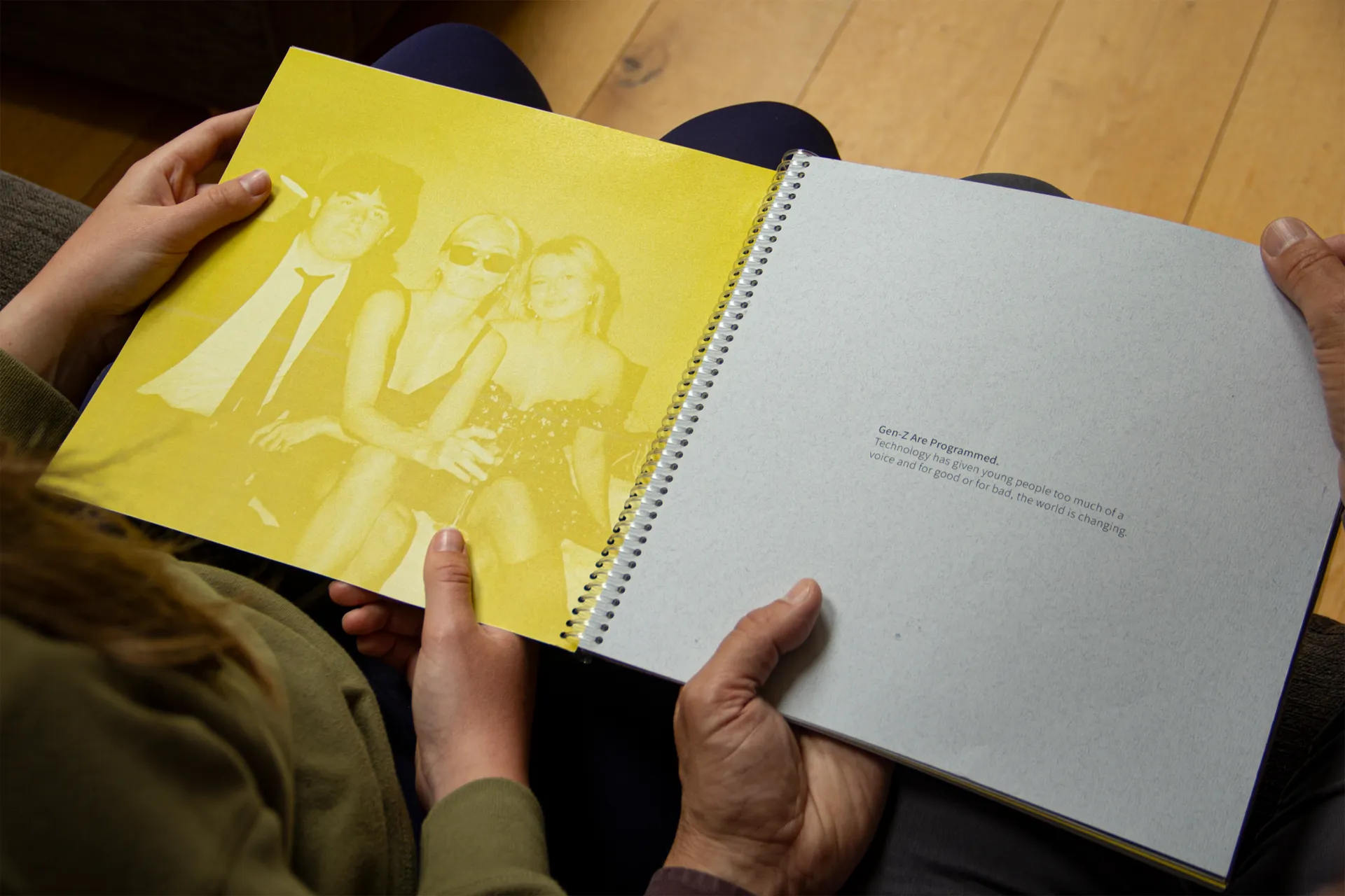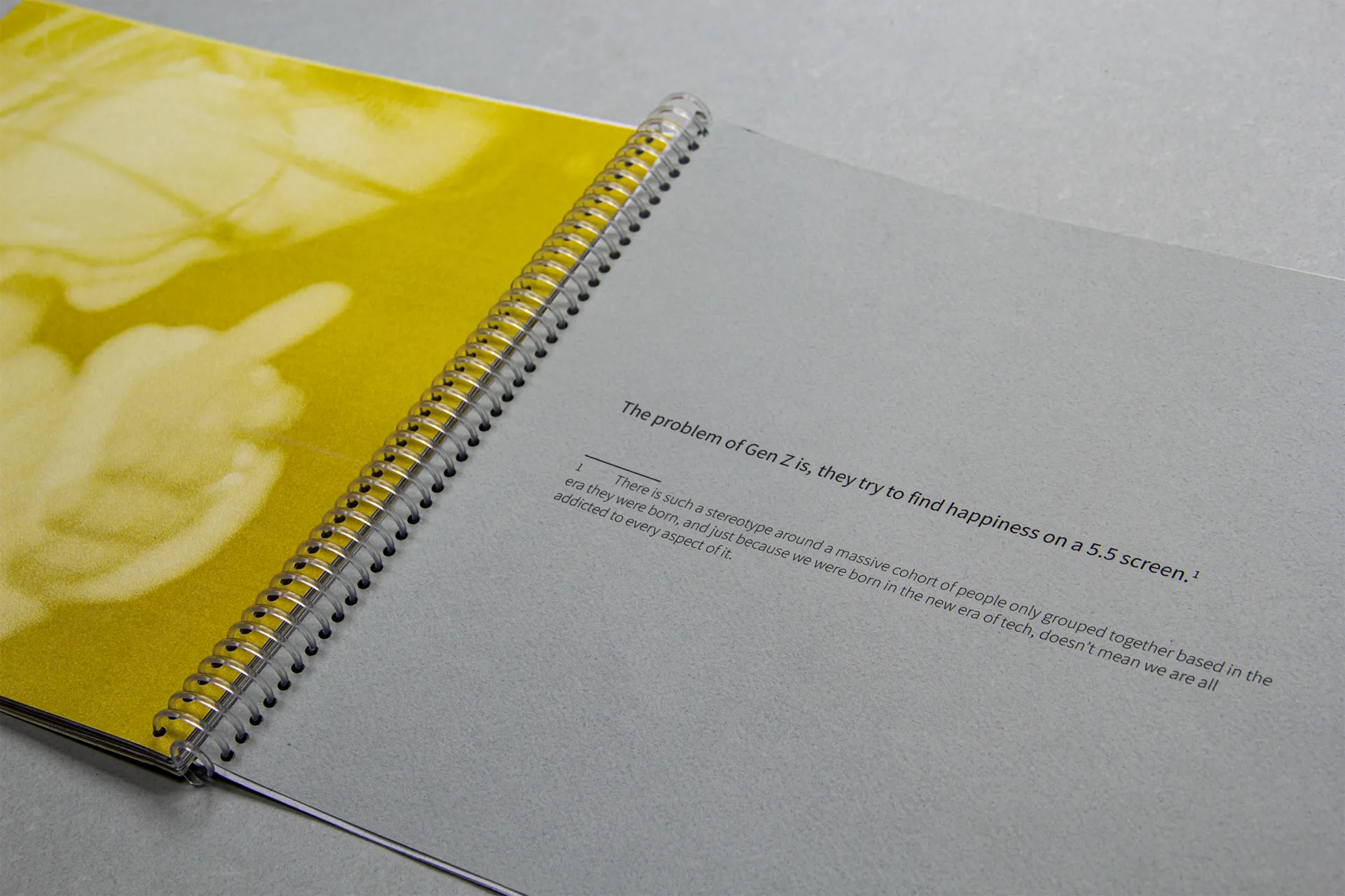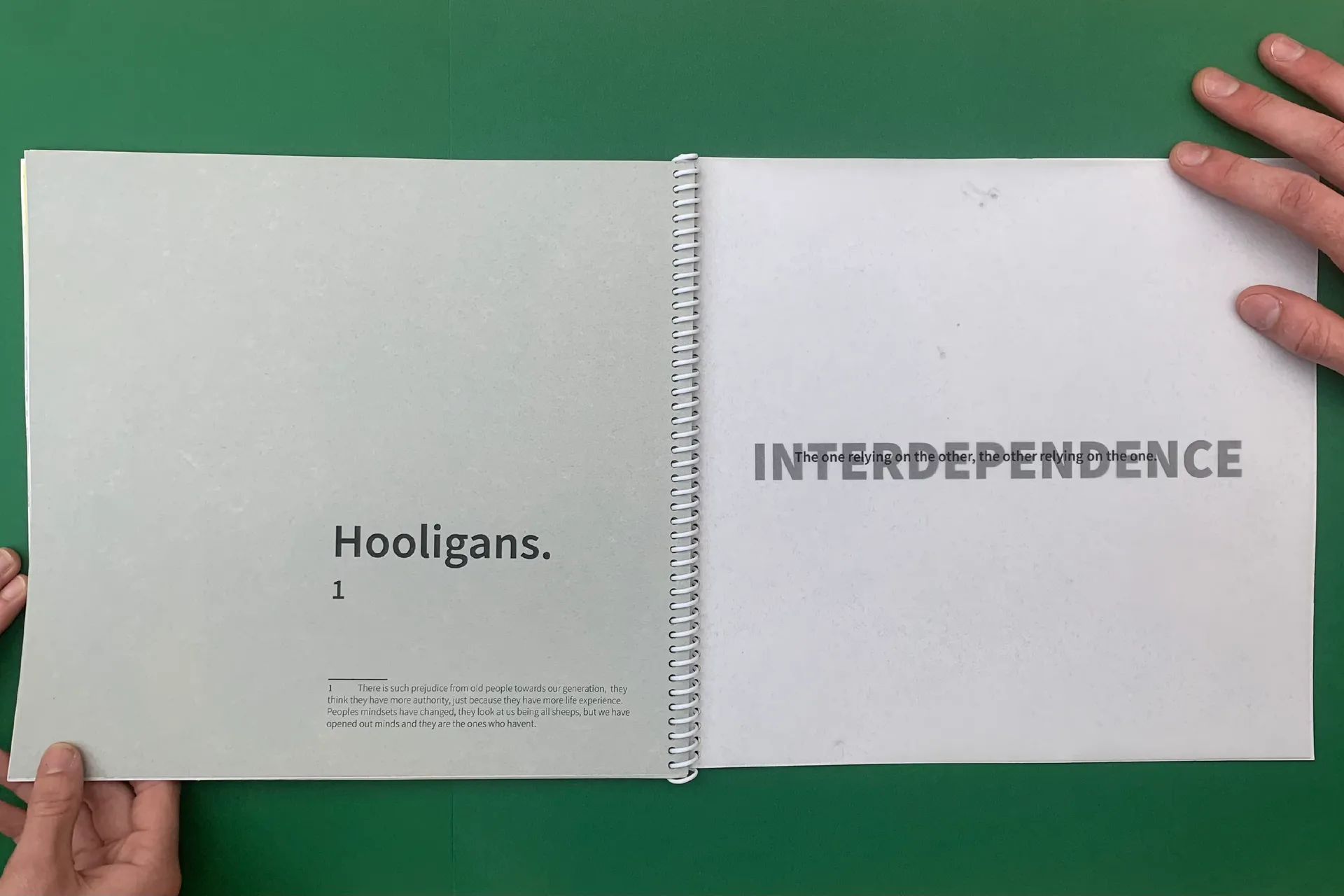 Gen-Z is misunderstood by previous generations; they are labelled snowflakes, lazy, technology-dependent, and worst ‘millennials on steroids’. The publication takes you on a journey to debunk the misconceptions of Gen-Z and to come to a mutual understanding to stop blaming each other for the state of society. I used specialist paper to highlight hierarchy through the language and add an aspect of reflection, by mixing visuals of Gen-Z and images from past generations growing up in a different era.