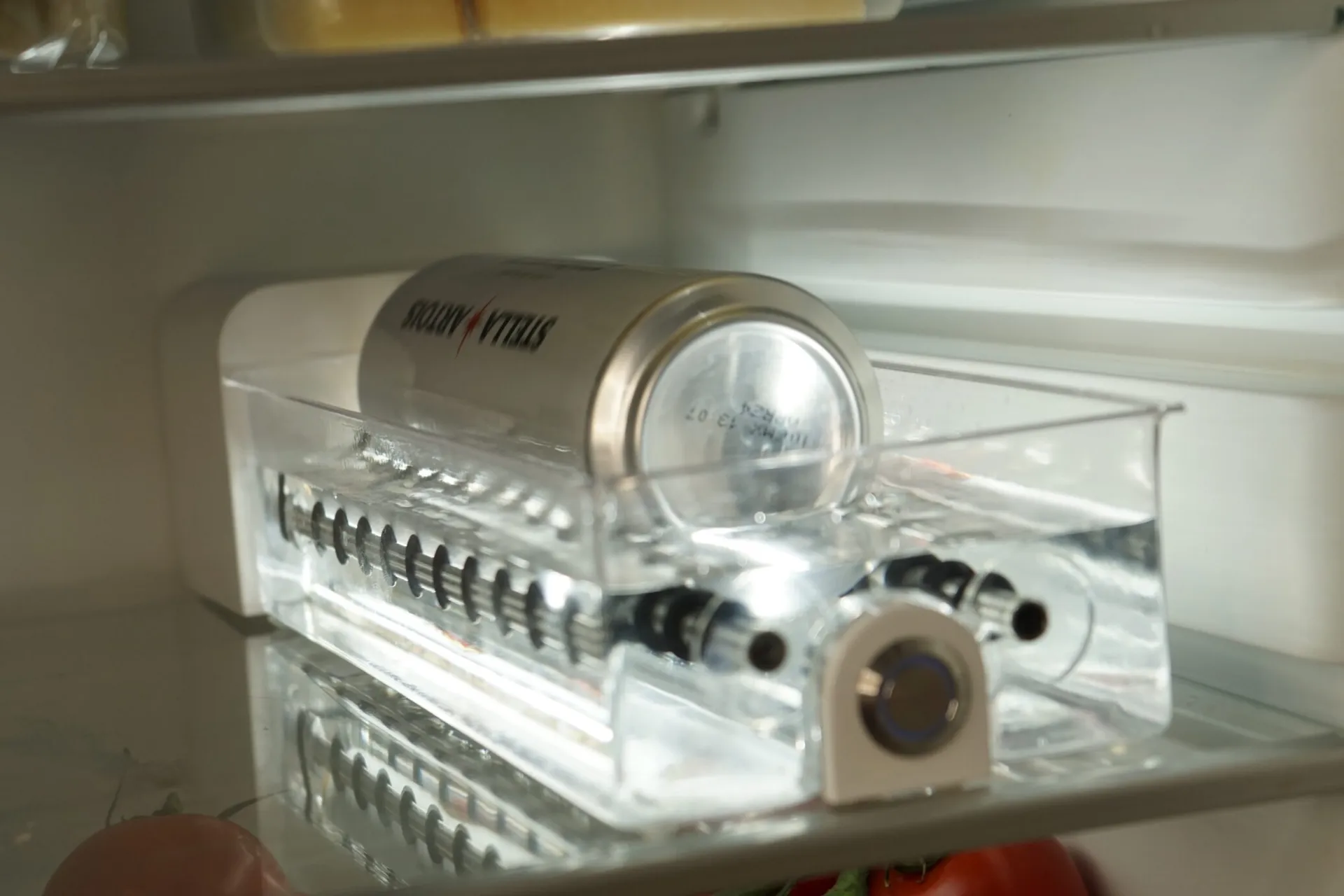 By correctly utilising social media, products can be launched onto the market and see immediate success. This project aimed to show how a design can be conceptualised, produced and marketed with social media in mind. It takes the form of a rapid drink chiller that saves space in the fridge by cooling drinks on demand, in only 60s. By rapidly spinning a drink container in a cold-water bath, the warmer liquid is transferred to the outside through convection where it is instantly cooled. My product uses a unique dual-roller belt-drive system which, unlike other coolers, can be used for any shape of drink. Alongside the product is a Tiktok page with videos of the product that gained over 20,000 views in 24 hours, and multiple interested buyers. The project delivers a production-ready prototype, a marketing strategy, and a model for designing a successful viral product.