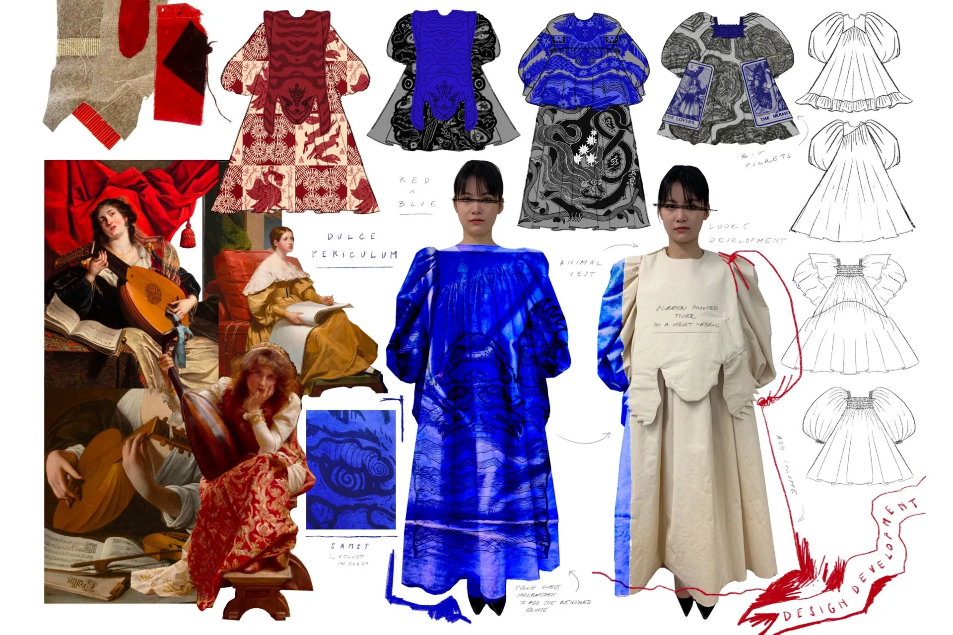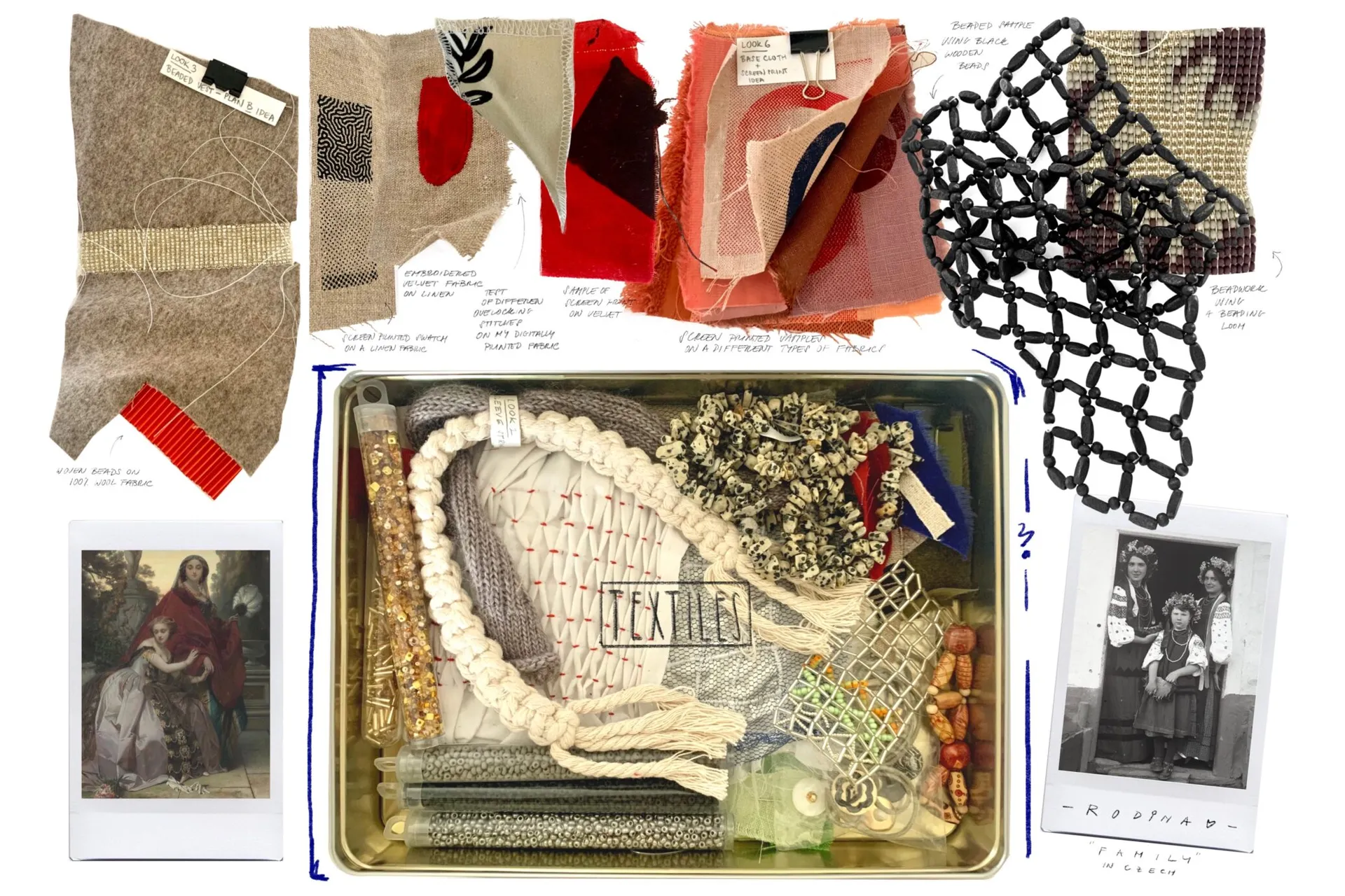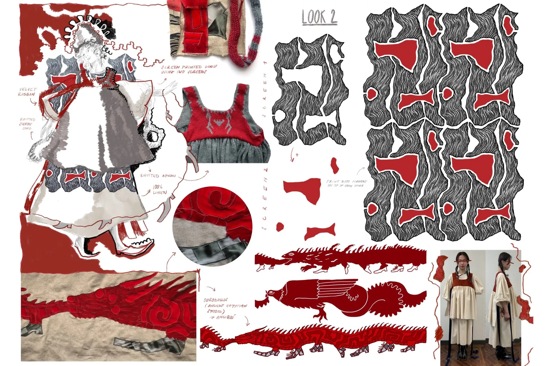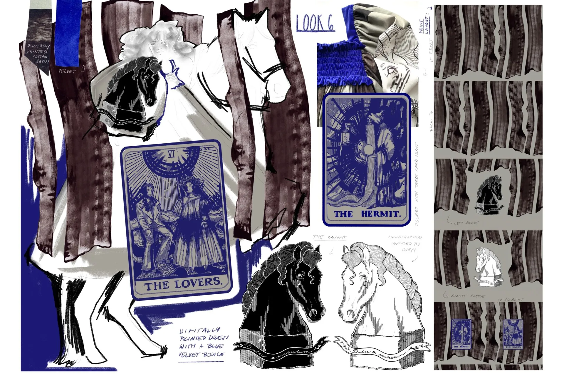 My designs incorporate rich textiles and patterns inspired explicitly by my Czech background as well as other European, South American and African cultures. The dresses have elements of fantasy and mythology, including silhouettes inspired by folk costumes, and geometric shapes inspired by trees and plants. The centrepiece of the collection is a series of dresses. These garments are elegant, sophisticated and modern, yet capture the mythical aspects of print design and the spiritual symbols of nature.