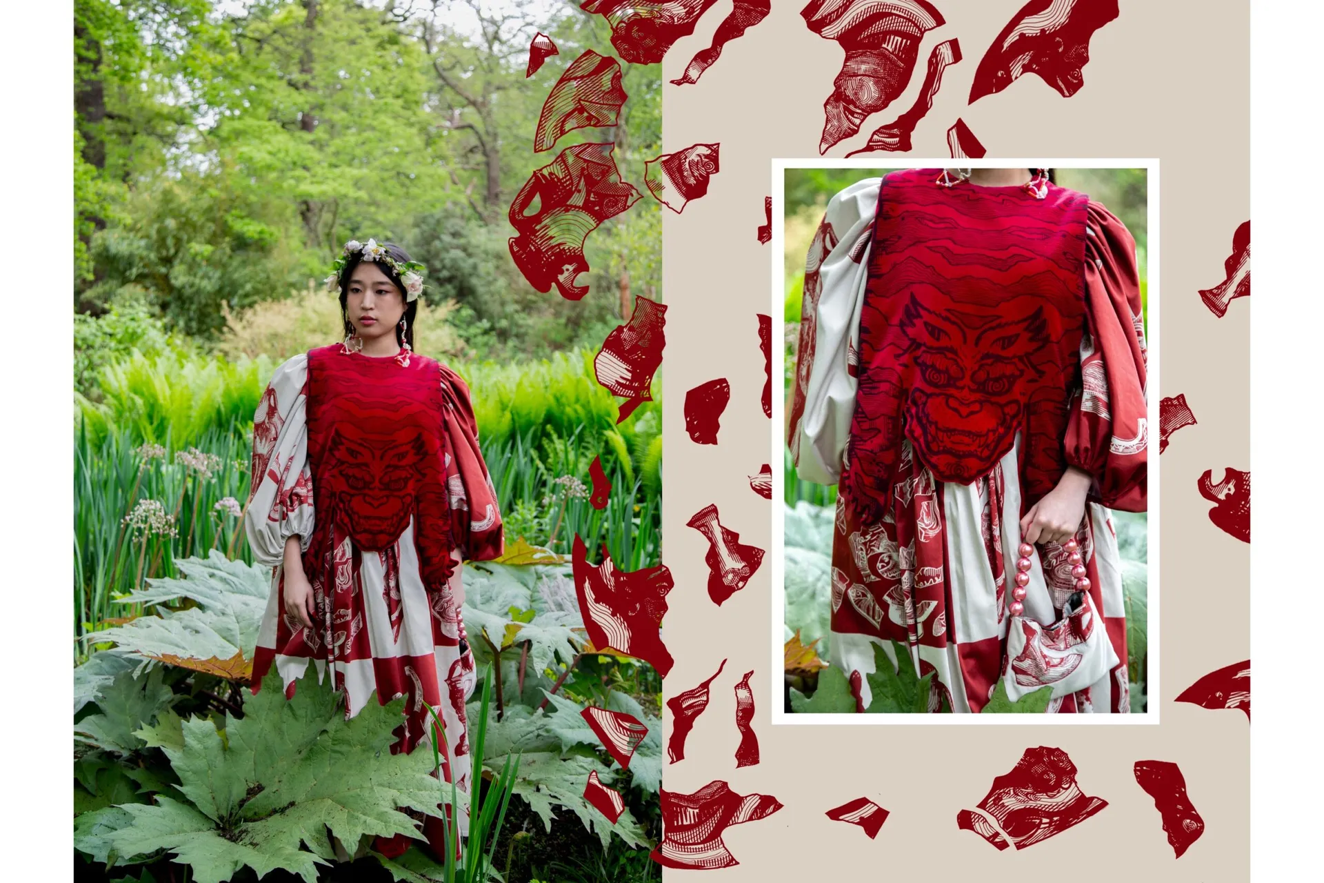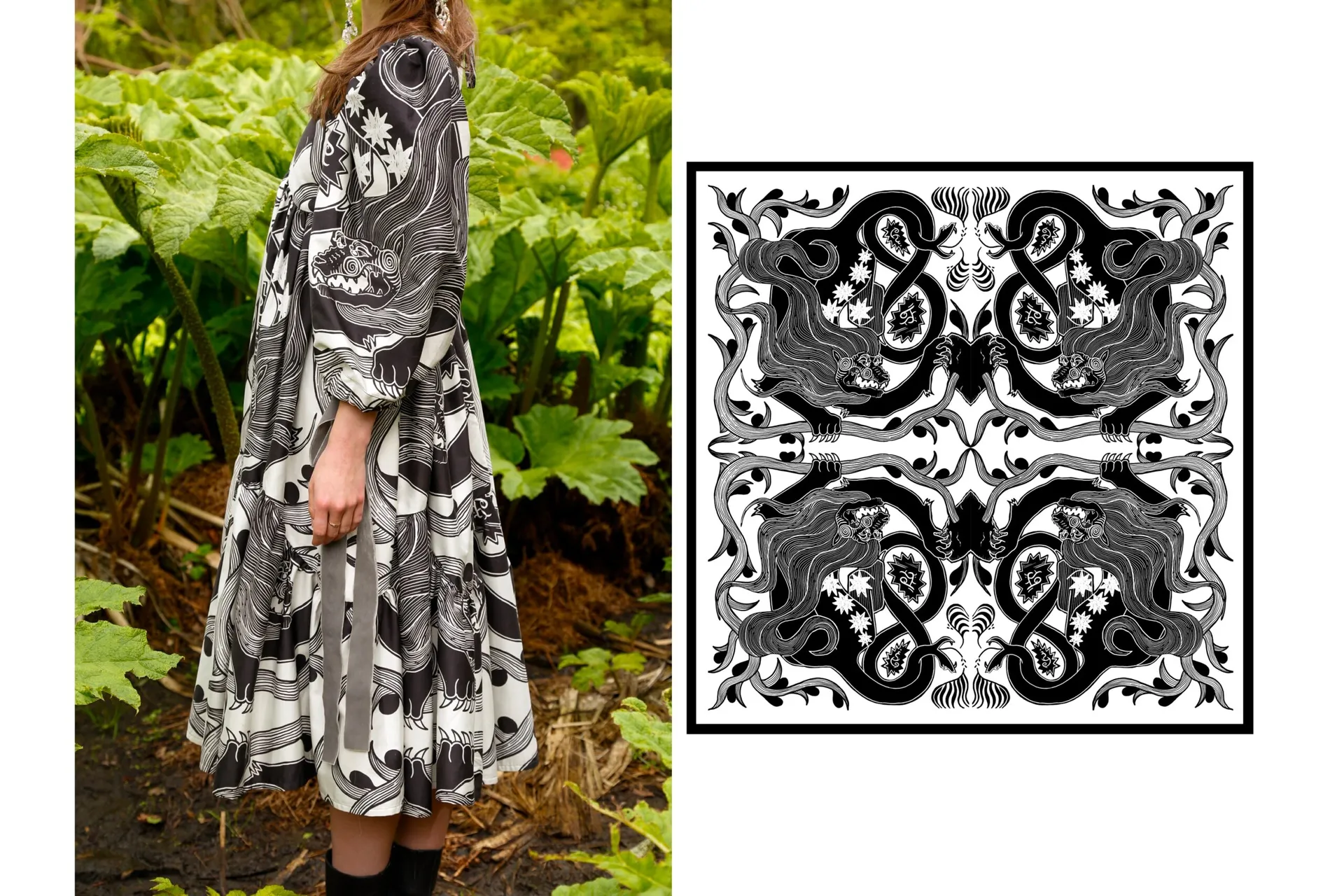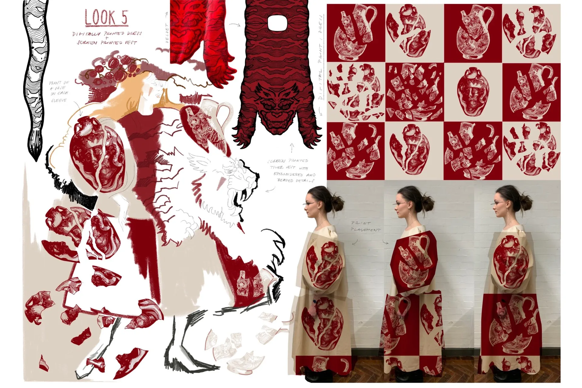 “Voices of Nature” is a womenswear collection where print is the prominent factor. The prints are inspired by nature and mythologies that are explanations of nature’s forces. They embody what was unexplainable for our ancestors; thunder, sea, spring, and fertility. By combining natural colours and prints inspired by patterns and figures from mythology, this collection captures the beauty and complexity of natural landscapes, as well as mythical qualities and the themes they influence.