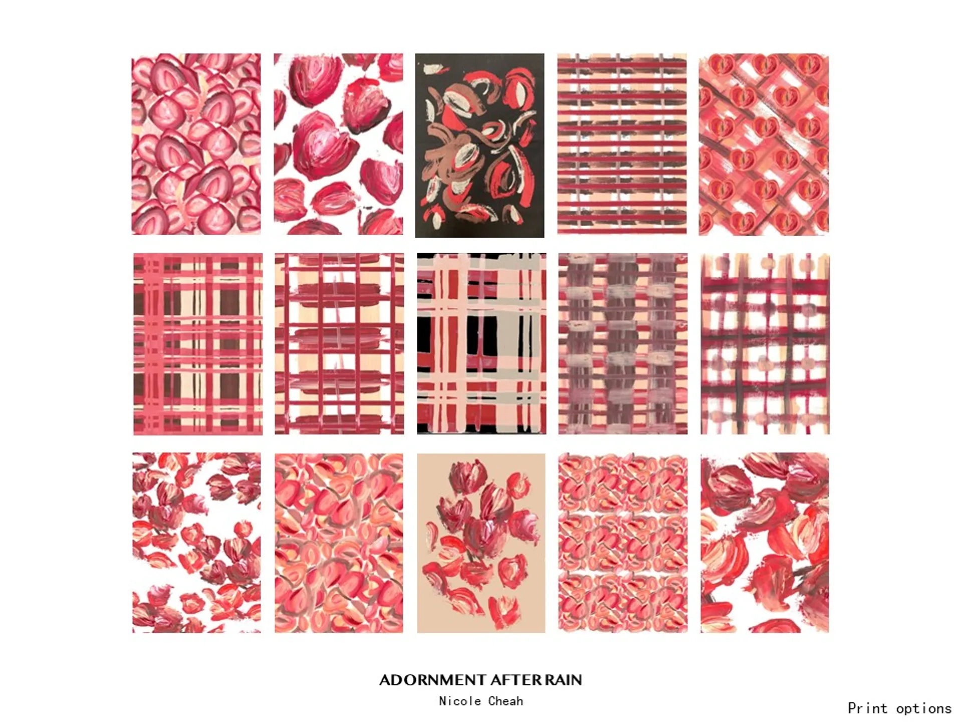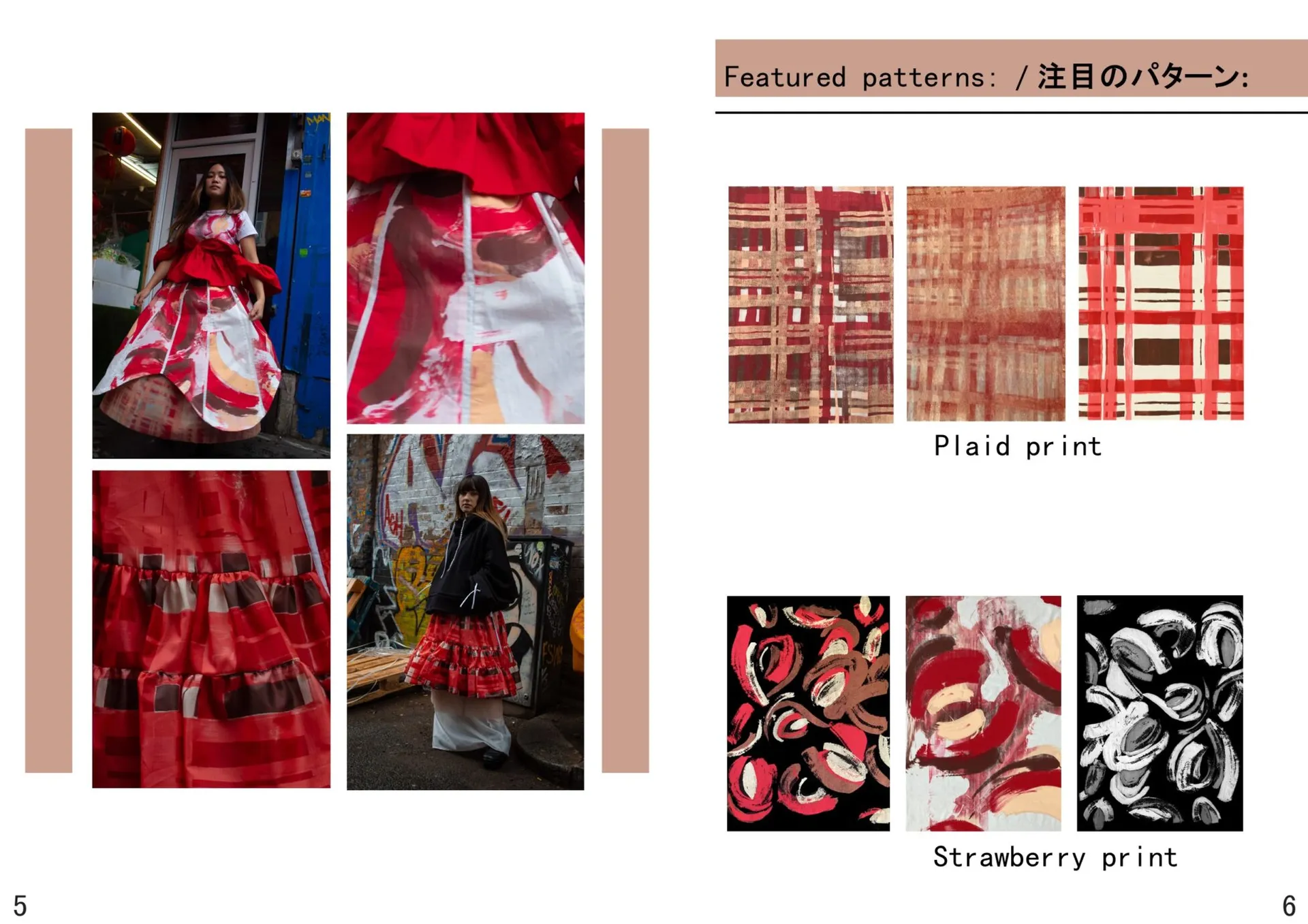 My prints for the collection were inspired by British plaids and Lolita ditsy fruit prints. My use of expressive mark-making and abstract interpretation aimed to subvert the vulvic suggestions of open fruit. Symbolic protection from the subculture sexualisation and preservation of its messages of expression and appreciation. A mixture of hand printing and painting digital techniques featured to have the same DIY and homemade element of Lolita dressing.