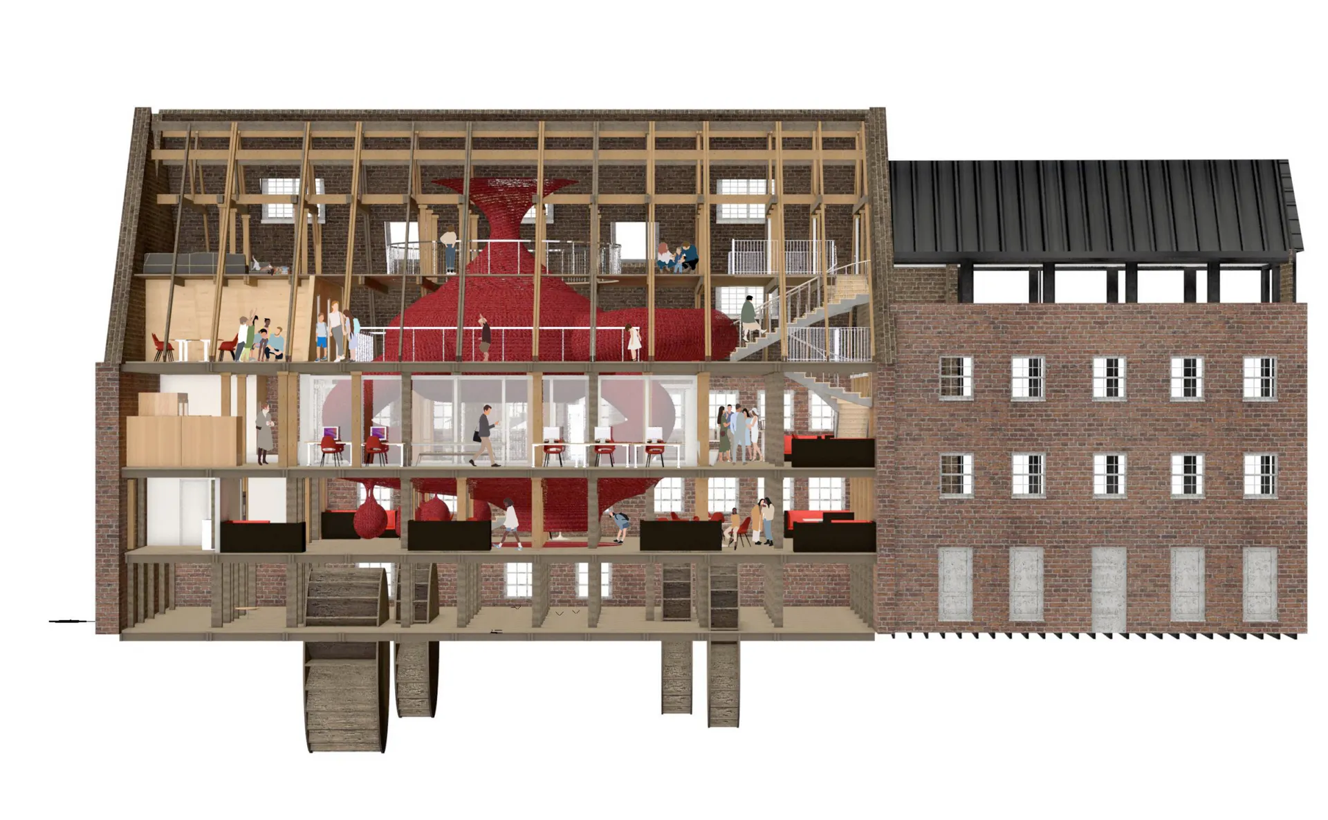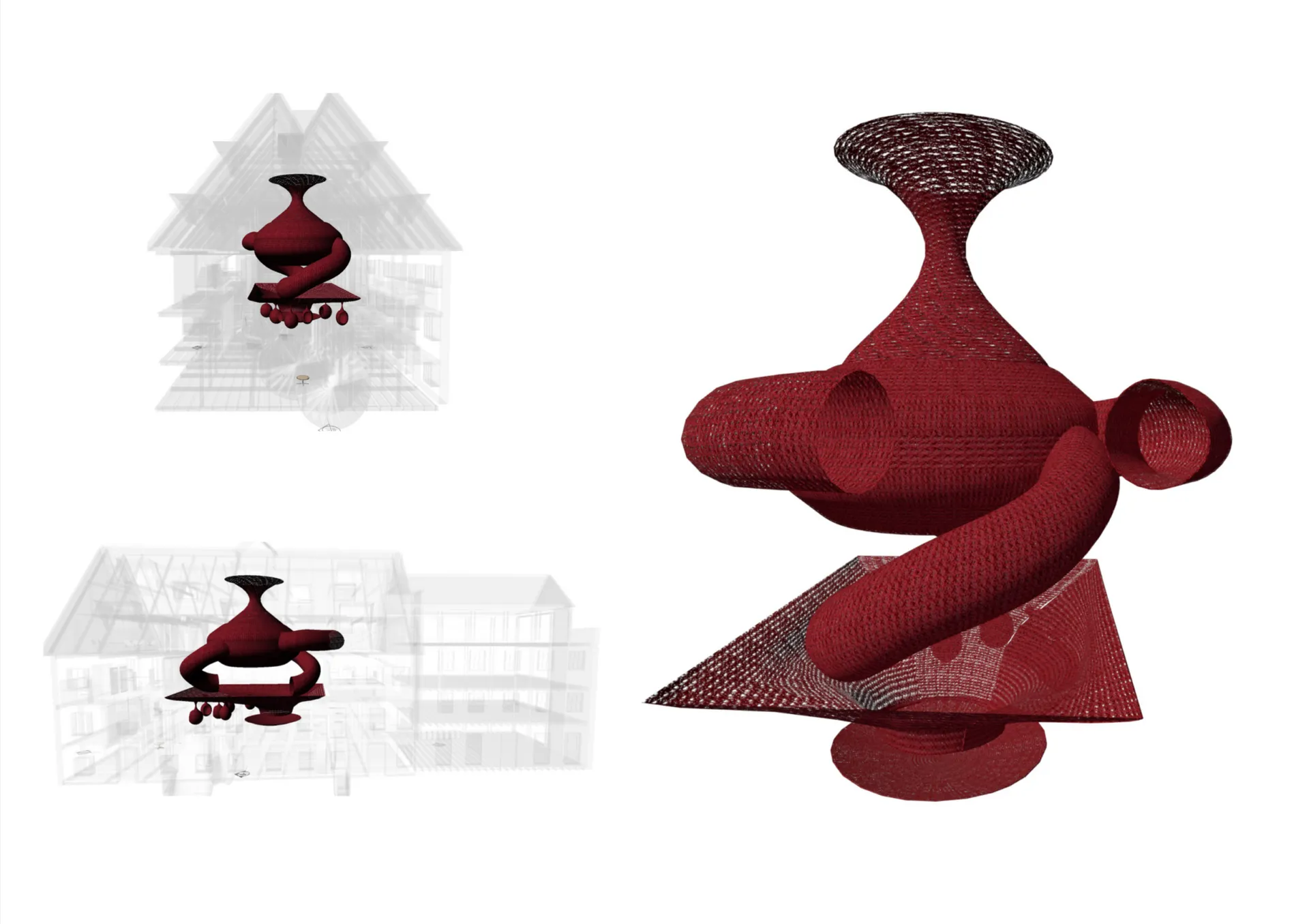 The network is a project I created based around bringing together the local community, centred by a crocheted structure that is climbable for the youth. The network includes a co-working space for parents and guardians, a relaxation space for all ages, a small cafe and the counterpoint is a crocheted structure made from entirely recycled polypropylene plastic.