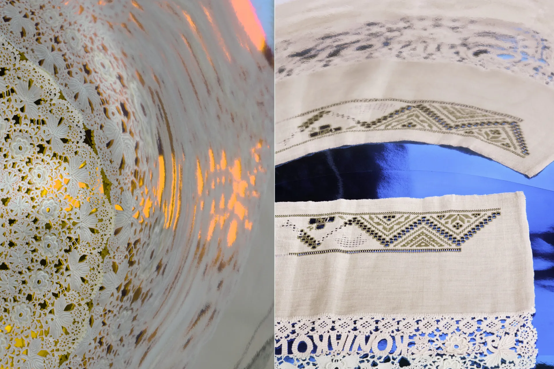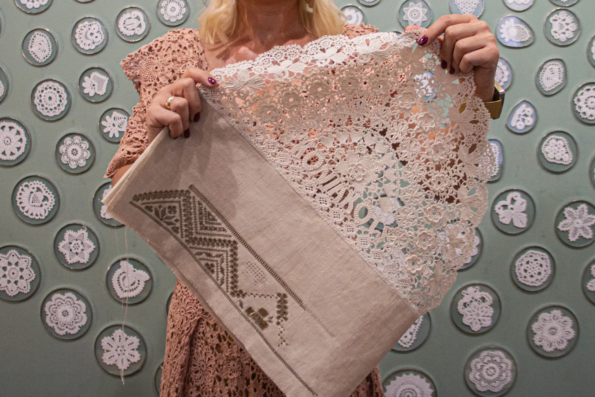 At this stage, project proudly showcases the remarkable work of two artisans: Margarita Charalambous from Pano Lefkara in Cyprus and Wieslawa Juroszek from Koniakow in Poland. Their canvas is a long linen piece, a cherished heirloom passed down through generations to Margarita from her grandmother. This continuous form serves as the base, symbolising the ongoing journey of the project leaving space for future artisan collaborators.
