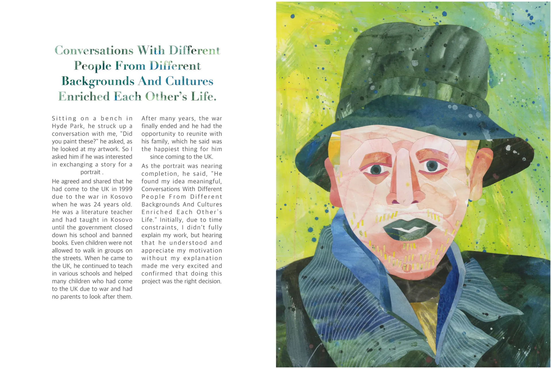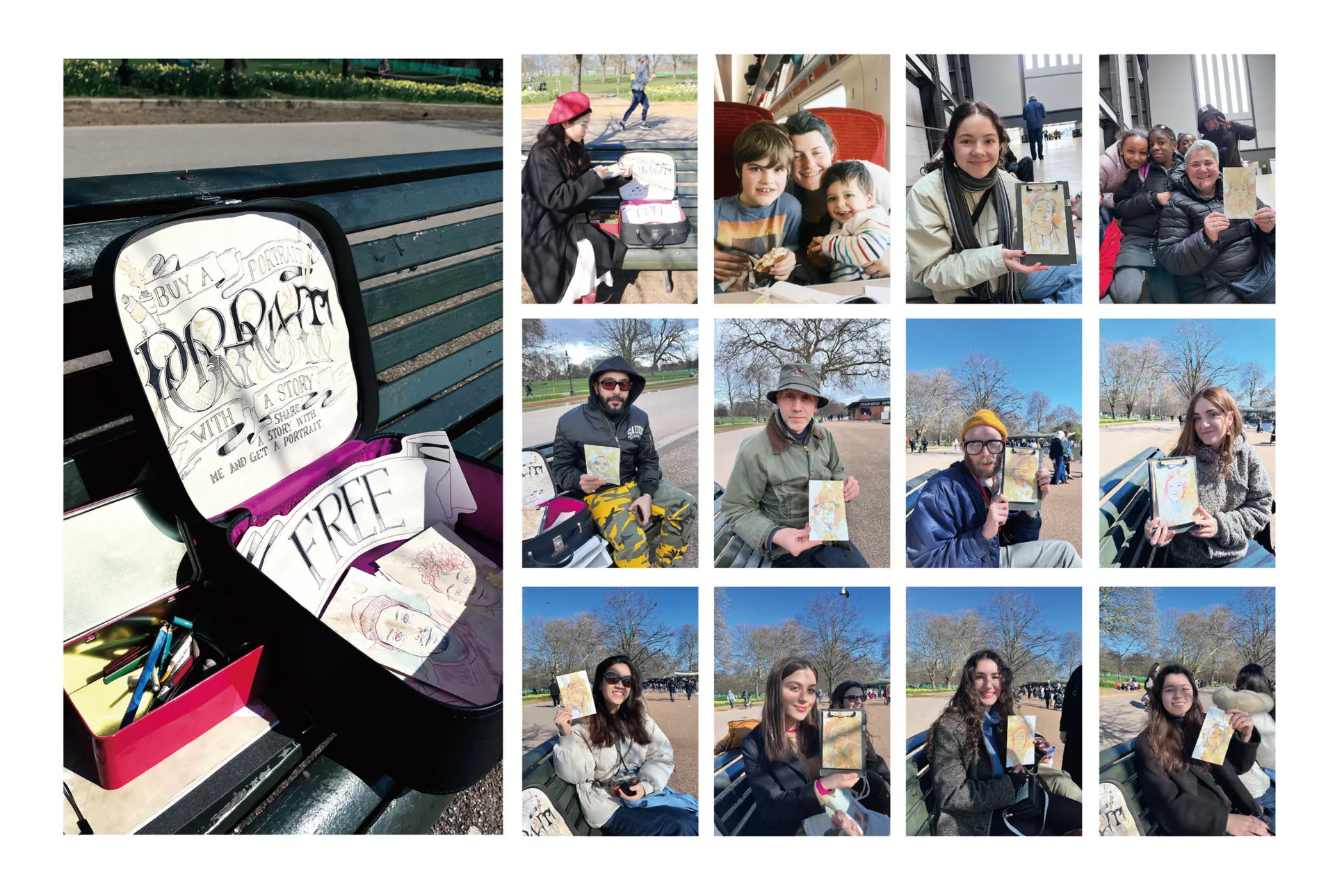 In this project, I embark on a personal endeavor by placing my own small sign in various corners of London. I engage with strangers who happen to pass by, striking up conversations and capturing their essence through portraiture. Each portrait becomes a gateway to exchanging stories, as we connect on a deeper level and share a piece of our lives. Through this unique and intimate interaction, I aim to create meaningful connections and celebrate the diverse narratives that unfold in the bustling streets of London.