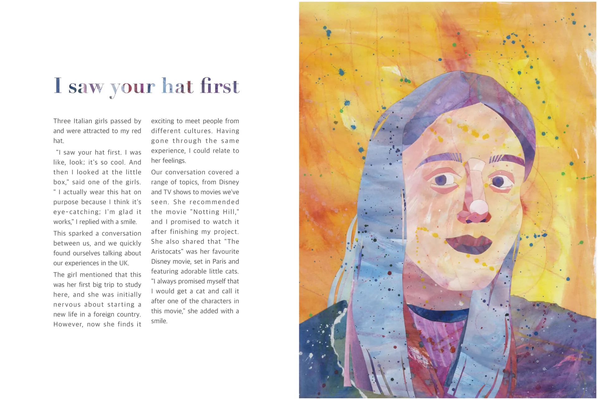 After I came to the UK, I communicated with different strangers by chance several times. Regardless of the length of the interaction, I always gained something, such as a philosophy of life, a good mood, self-confidence…etc.Those good interactions with strangers build my confidence to start this project. Each interaction brings me new energy and ideas, helping me to see things from a fresh perspective.