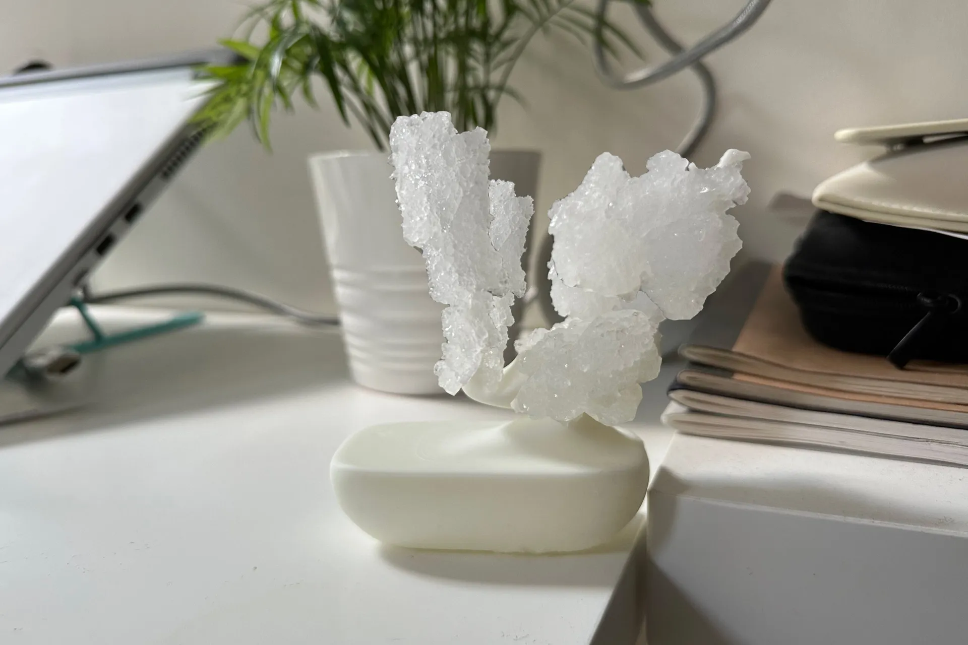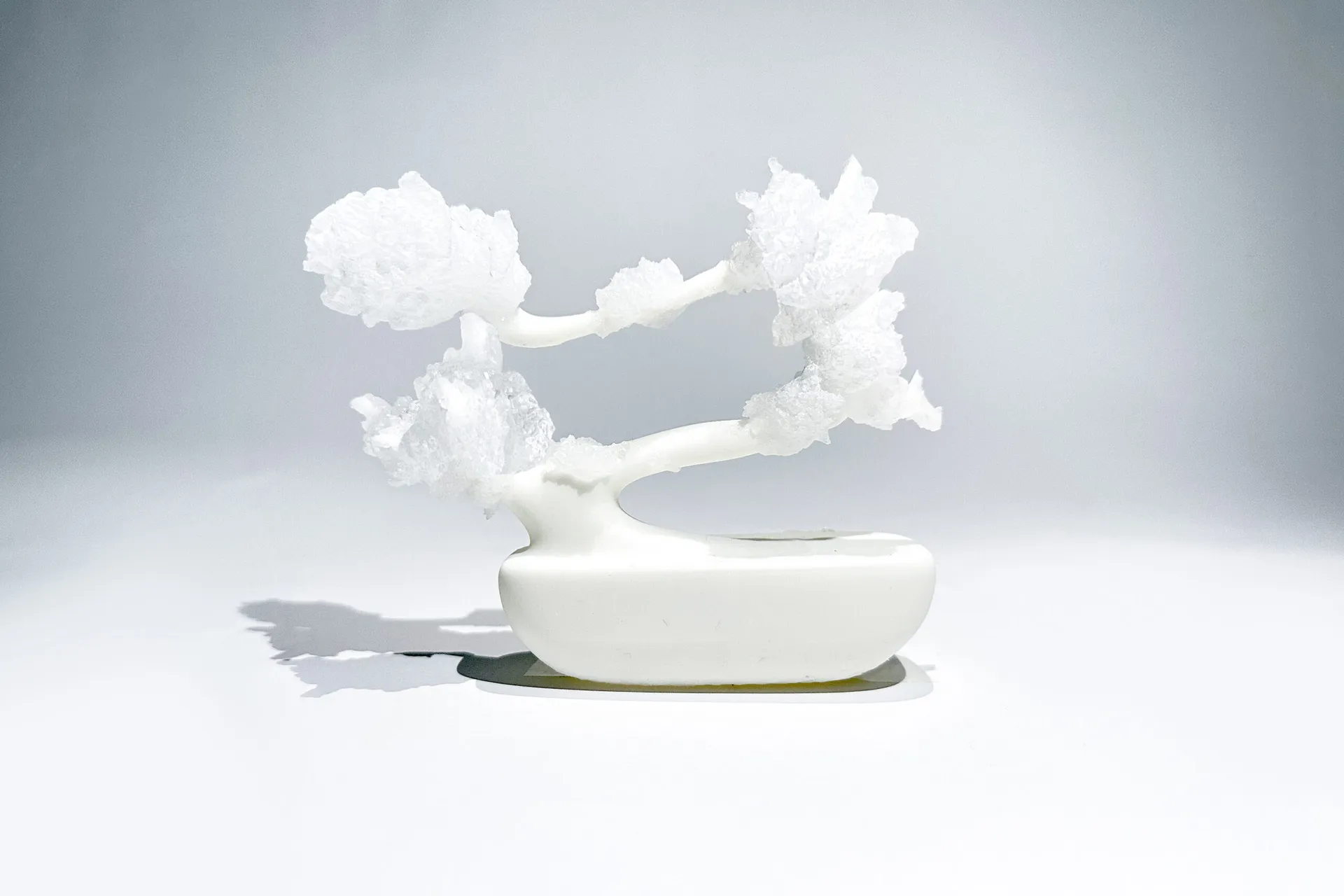 Crystal-Bonsai is inspired by growing plants. While interest in growing plants like bonsai is increasing, providing sunlight and water is not easy for busy young people lacking the required knowledge and skills – Crystal Bonsai offers an alternative growing experience.