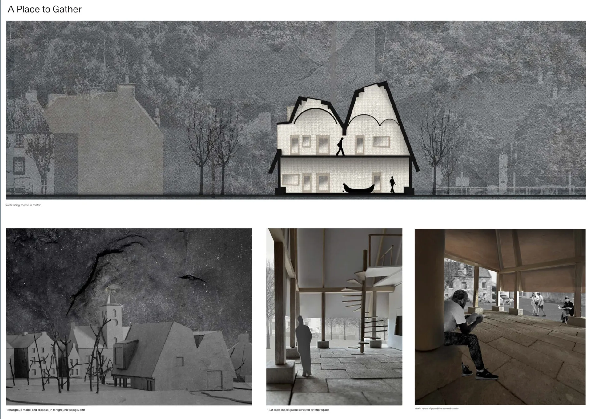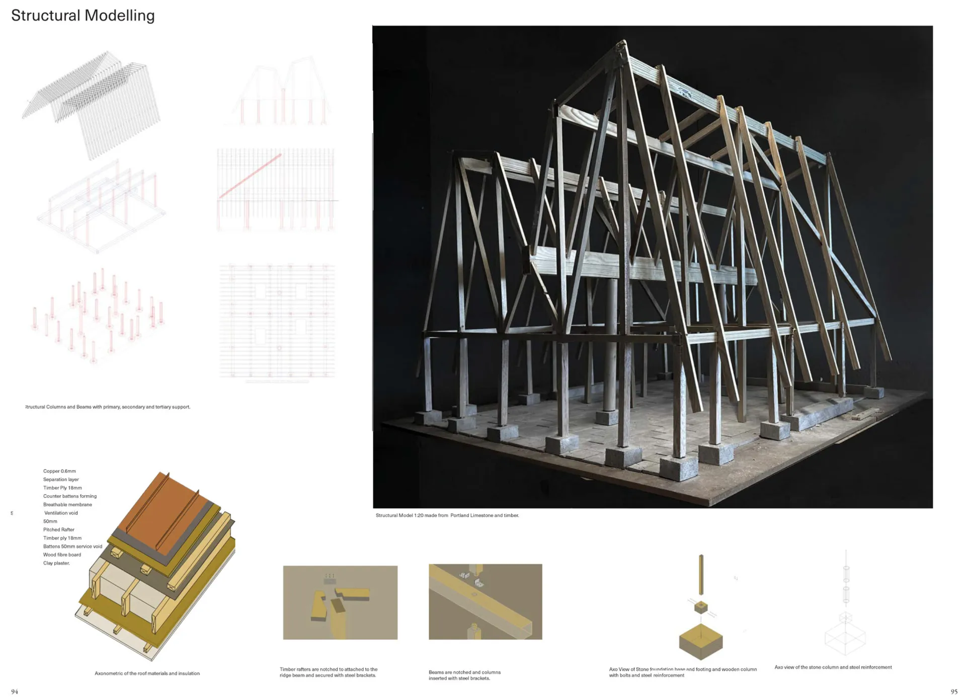 I focused on creating a community space that fosters social togetherness and civic unity by providing a generous covered area. My proposal explores a building that reconnects a coastal town with its waterfront and cultural heritage while incorporating a secondary use as a boatbuilding workshop.