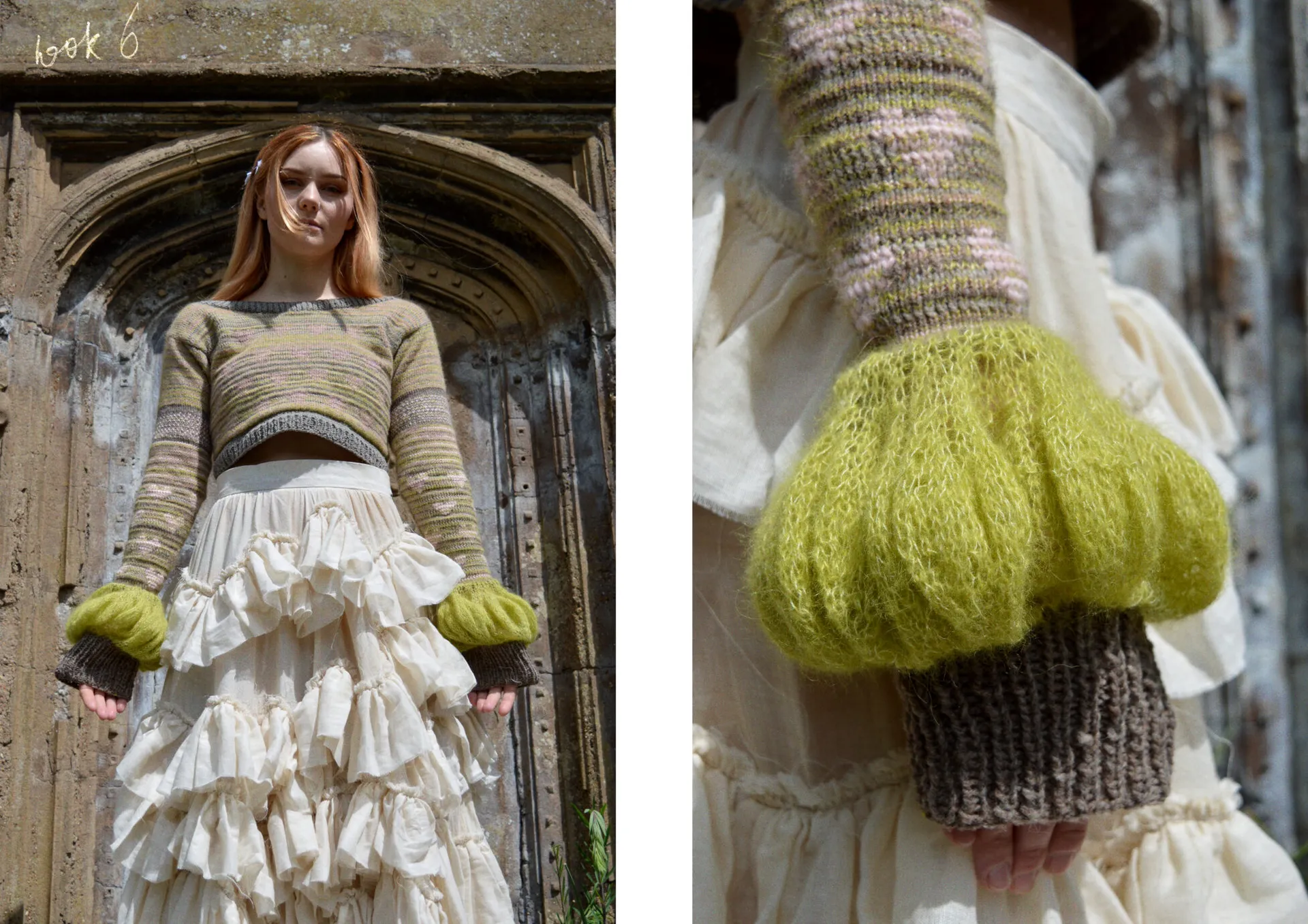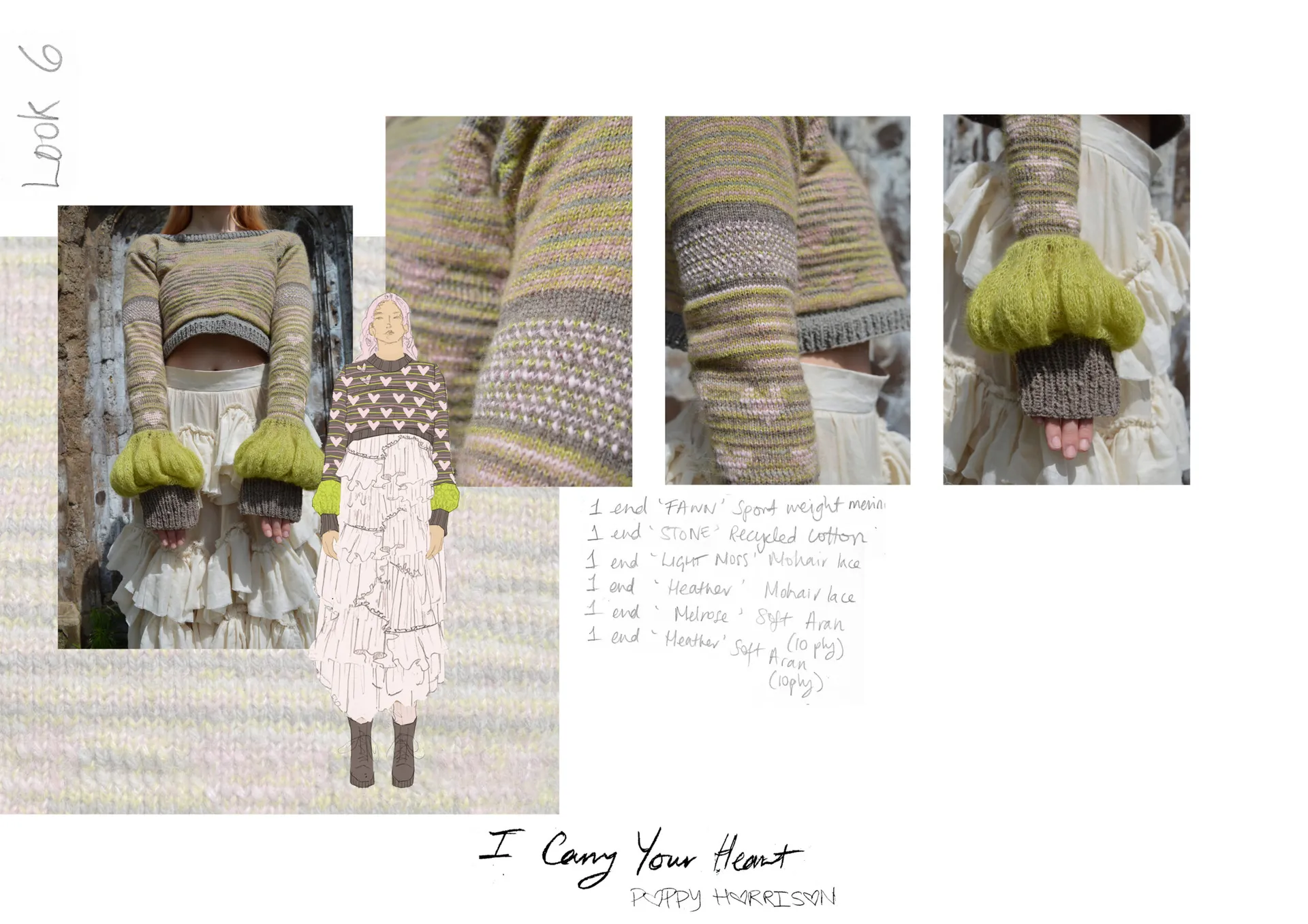 Portfolio pages showing mood, line up, print development and knit close-ups.