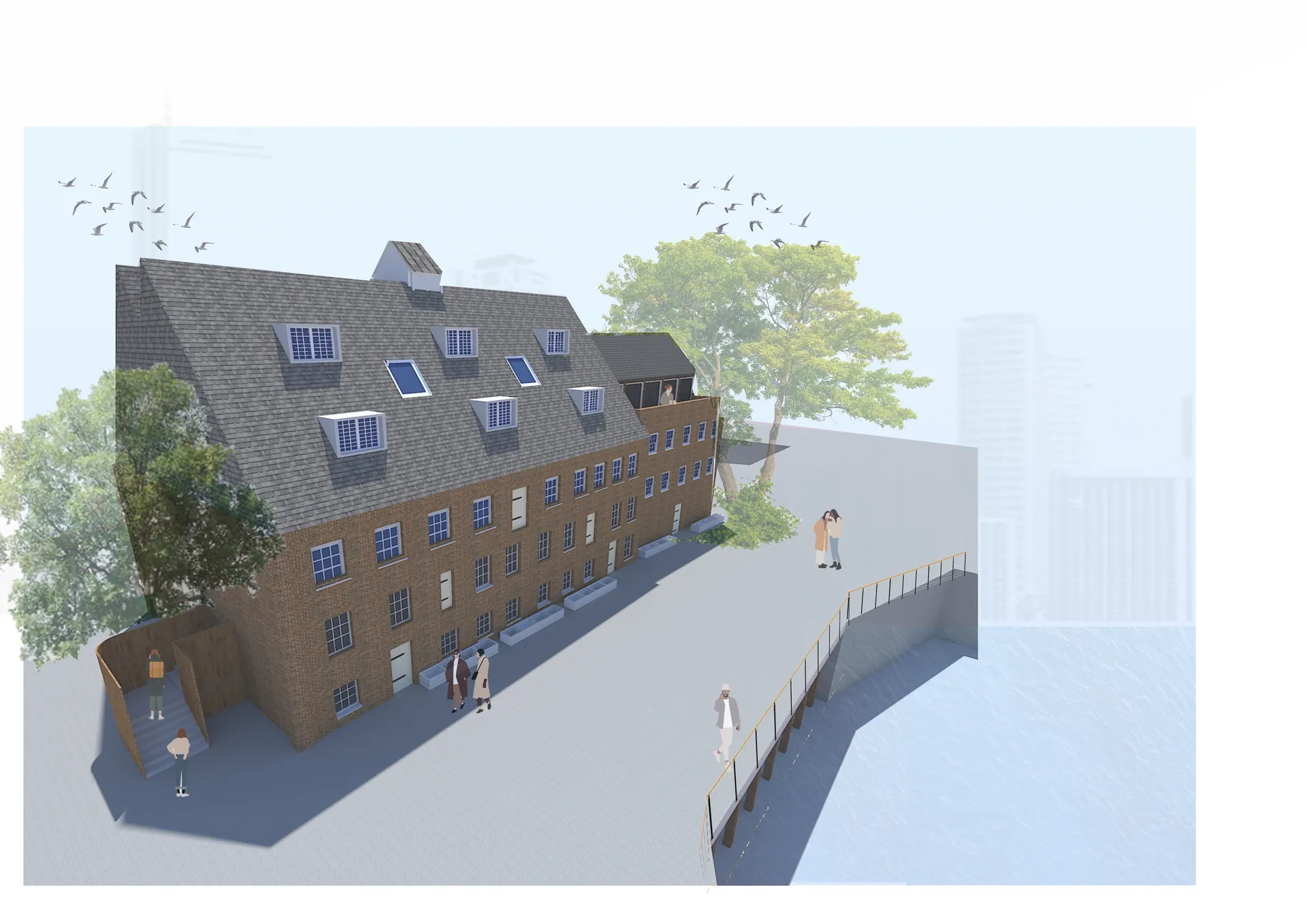 My Final Major Project is located in The Mill House in Bromley by Bow, London. It is a Grade 1 listed 18th century Tidal Mill– during my final major project I will be converting this Mill into a Plastic to Fabric manufacturing space, with various workshops and classroom for students and creatives from the local area and universities to come and create sustainable garments, along with learning about the importance of finding alternatives for our current finite material sources. As a designer in the 21st century, it is essential for all creatives to learn how to make more sustainable decisions, as all environmental issues begin with the point of design.