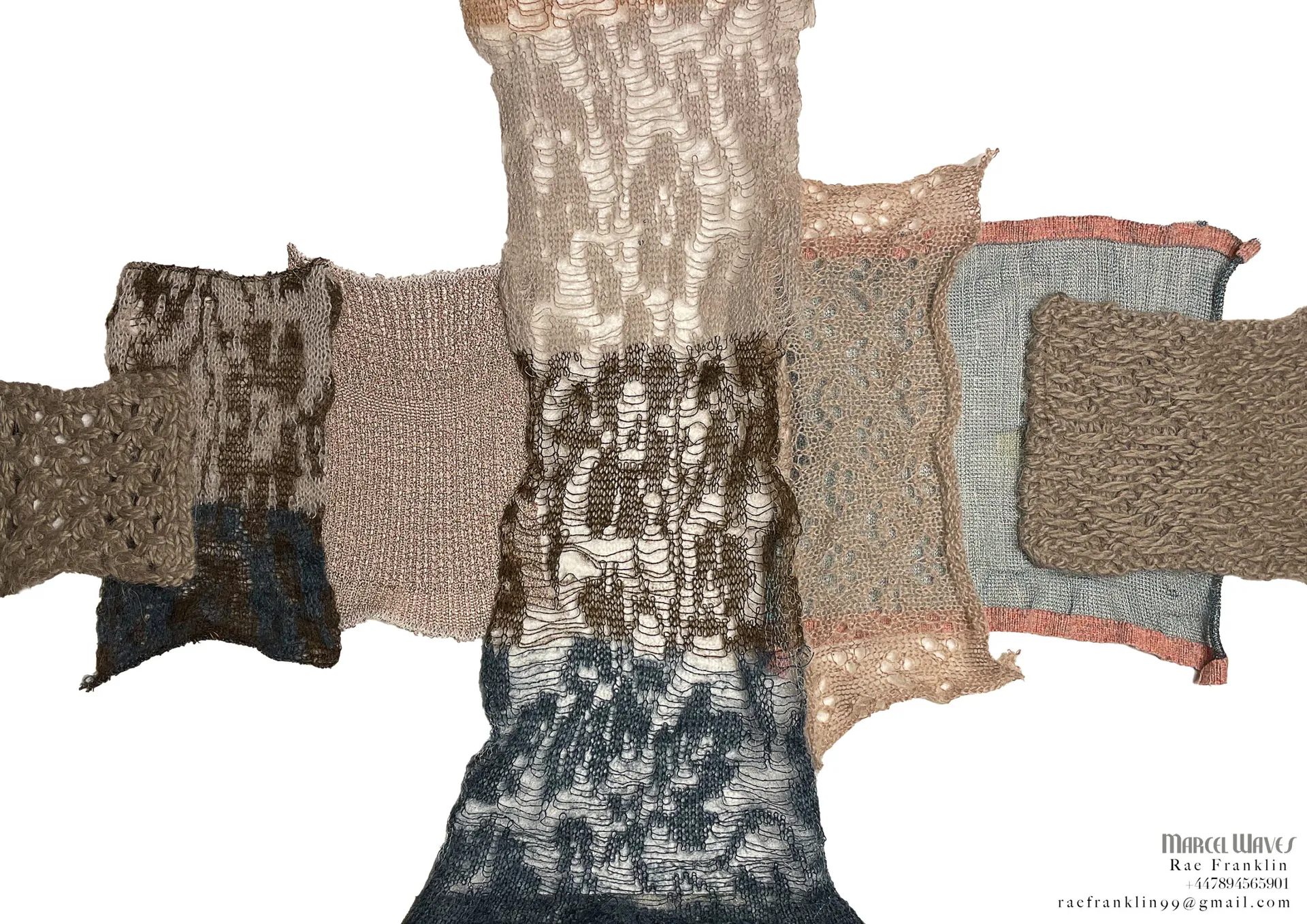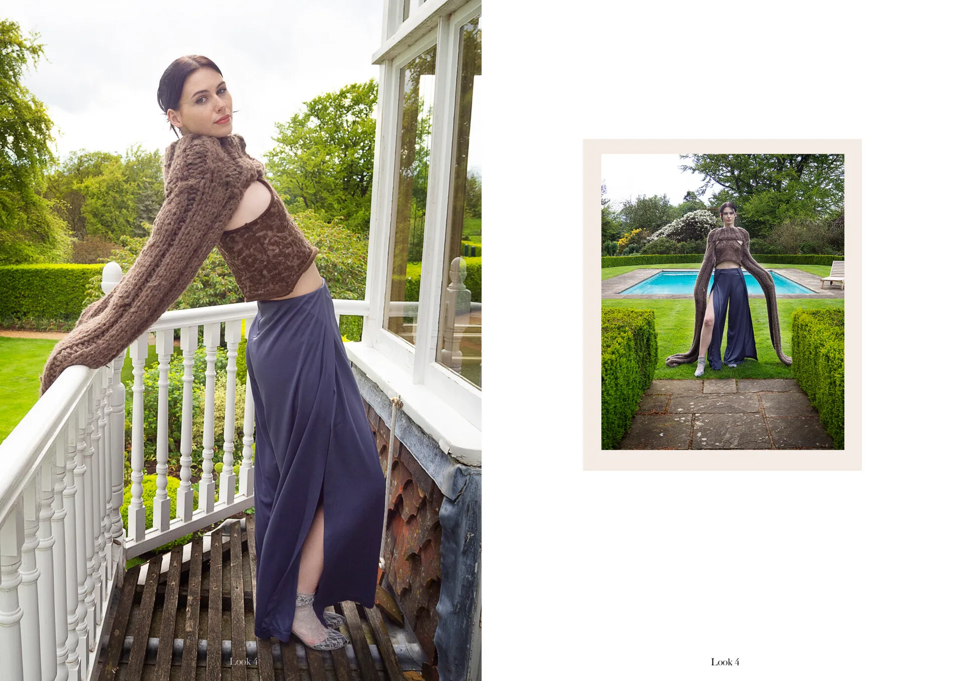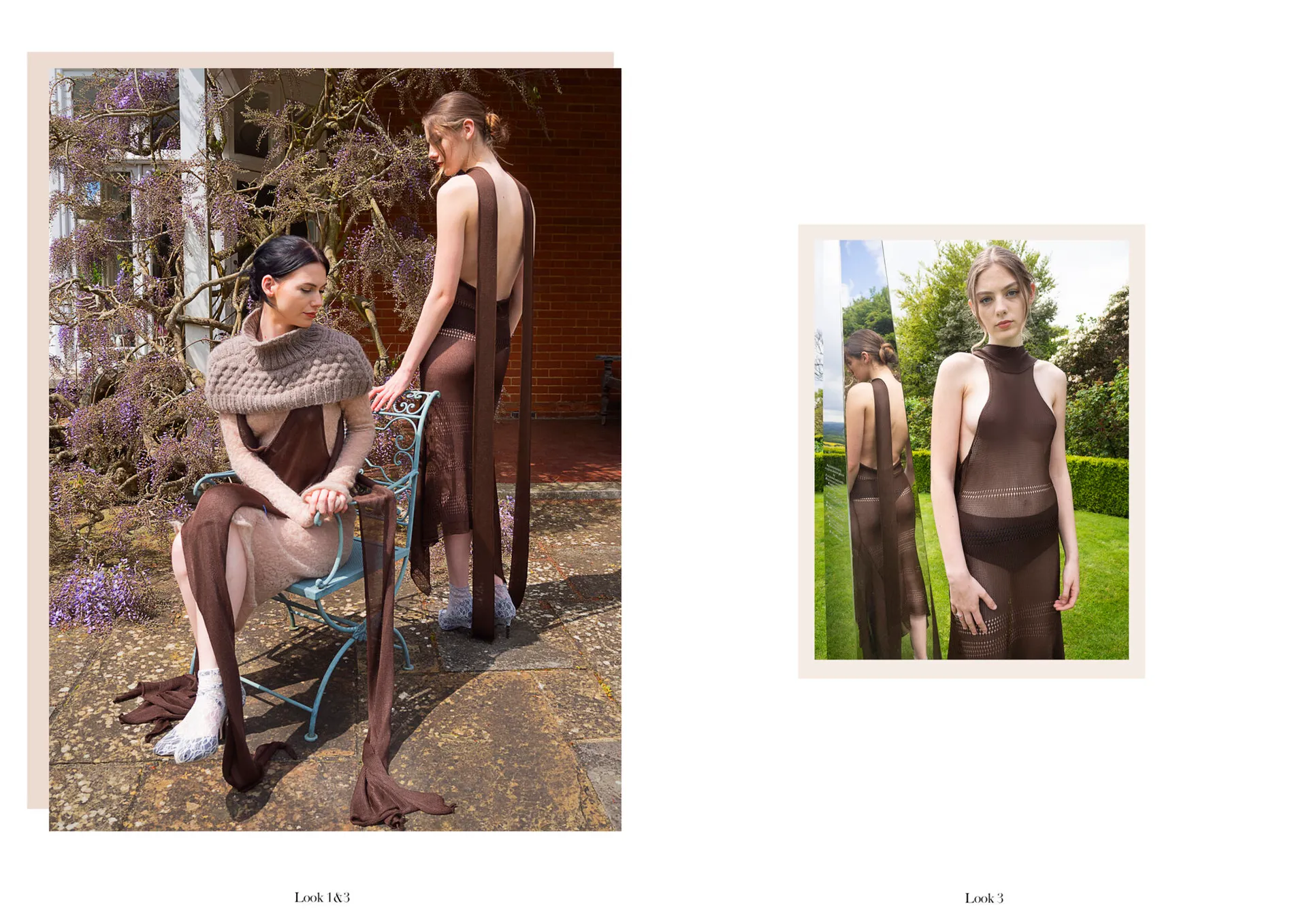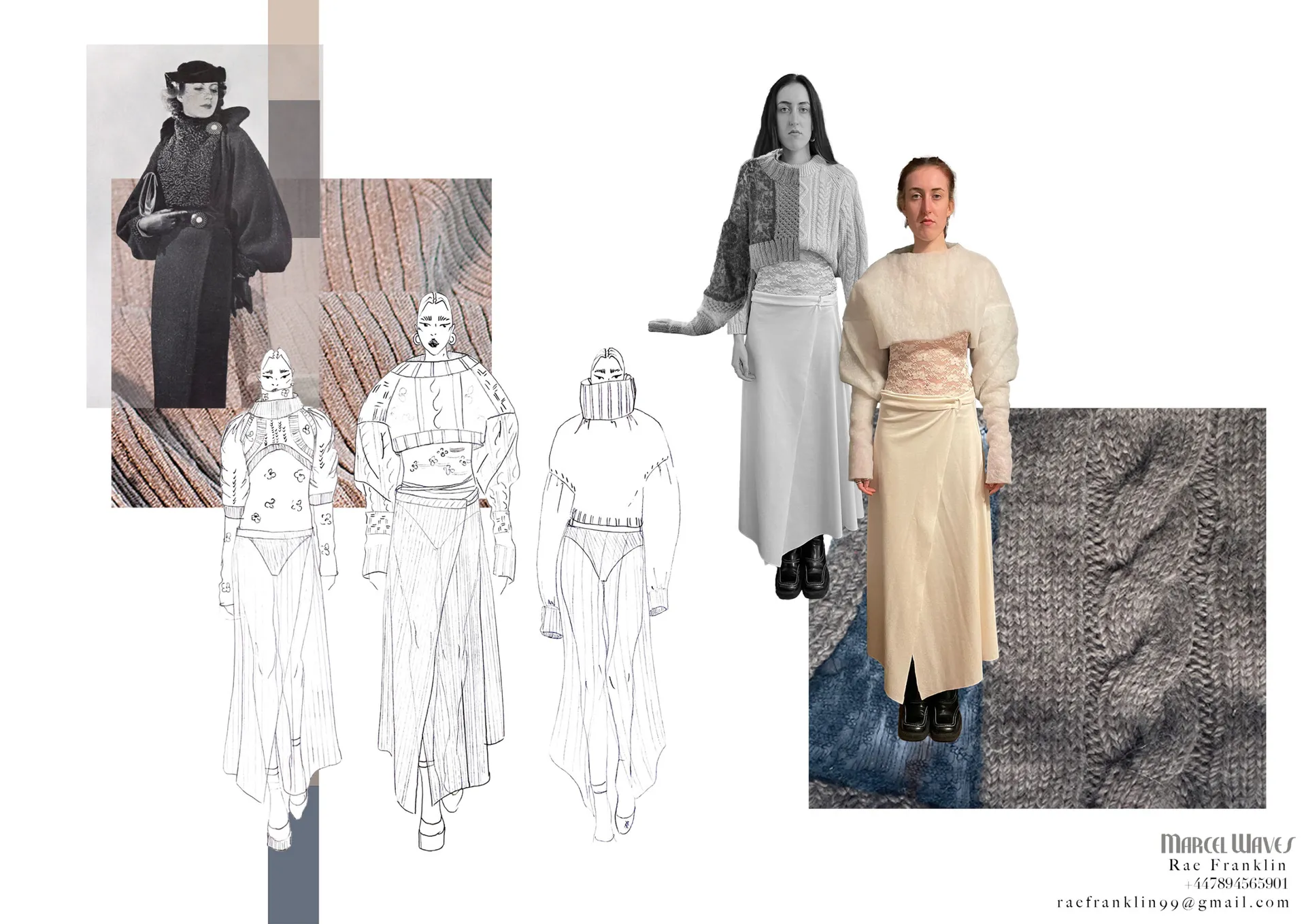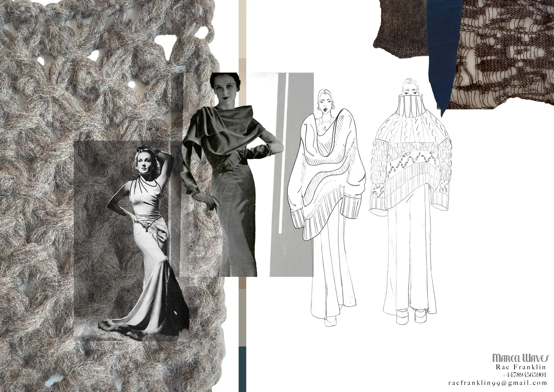 Inspired by an old sepia photograph of my great grandmother Maria on her wedding day led me to research and explore the silhouettes, draping and details of the 1930s. Fusing this with inspiration drawn from the renowned Carrickmacross lace, the Irish ancestral home of my family. I wanted to explore, develop and translate the lace into innovative knitted textiles by using various yarn combinations and knit techniques to inform and create new shapes and silhouettes whilst being consciously responsible in my approach.