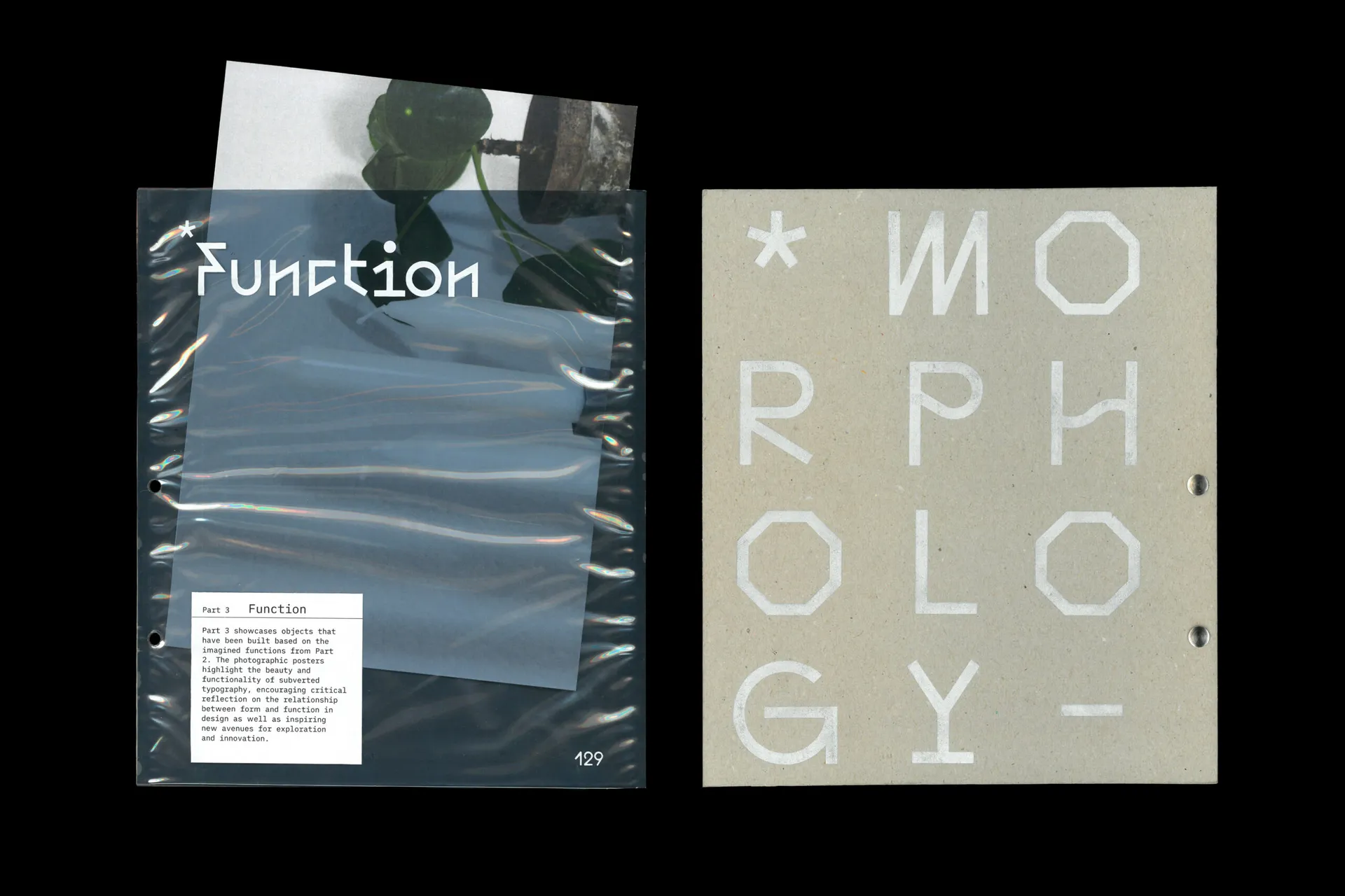 Morphology: Function Follows Form — uses the transformation of letterforms from the typeface ‘Heal The Web B’ into 3D objects to encourage critical reflection on the relationship between form and function in design. The project has a multifaceted outcome, including a publication that showcases one of the letterform-turned-objects and documents the project’s process. The publication has three sections reflecting the three-part-phrase “function follows form” and explores the diverse range of possibilities in subverted typography through objects built based on imagined functions. The publication is complemented by several 3D objects which were crafted in the shapes of various letterforms; including capital ‘T’ shaped candle stick holders, ‘z’ shaped s-hooks and a lowercase ‘t’ stool/ side table. These objects showcase the potential of subverted typography and bring into question the relationship between form and function in design through their unique designs; inspiring new avenues for exploration and innovation.