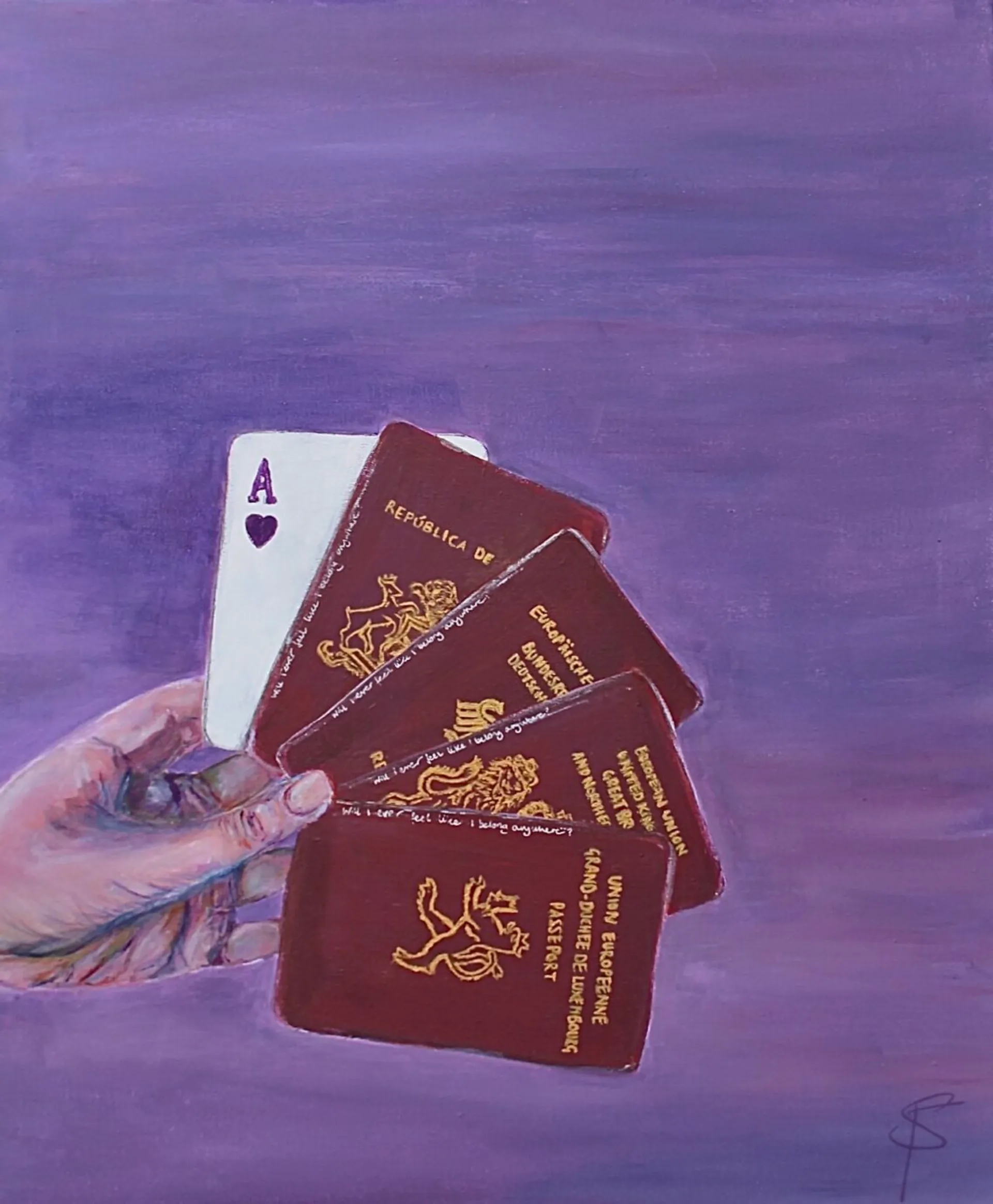 My work ranges from digital and acrylic painting, to short-form video, and installation. Practically all of my work surrounds self-portraiture in one form or another, as my practice is currently focused on grounding myself, and self-reflection. Key themes that I explore are identity, queerness, language and translation, and growing up.
