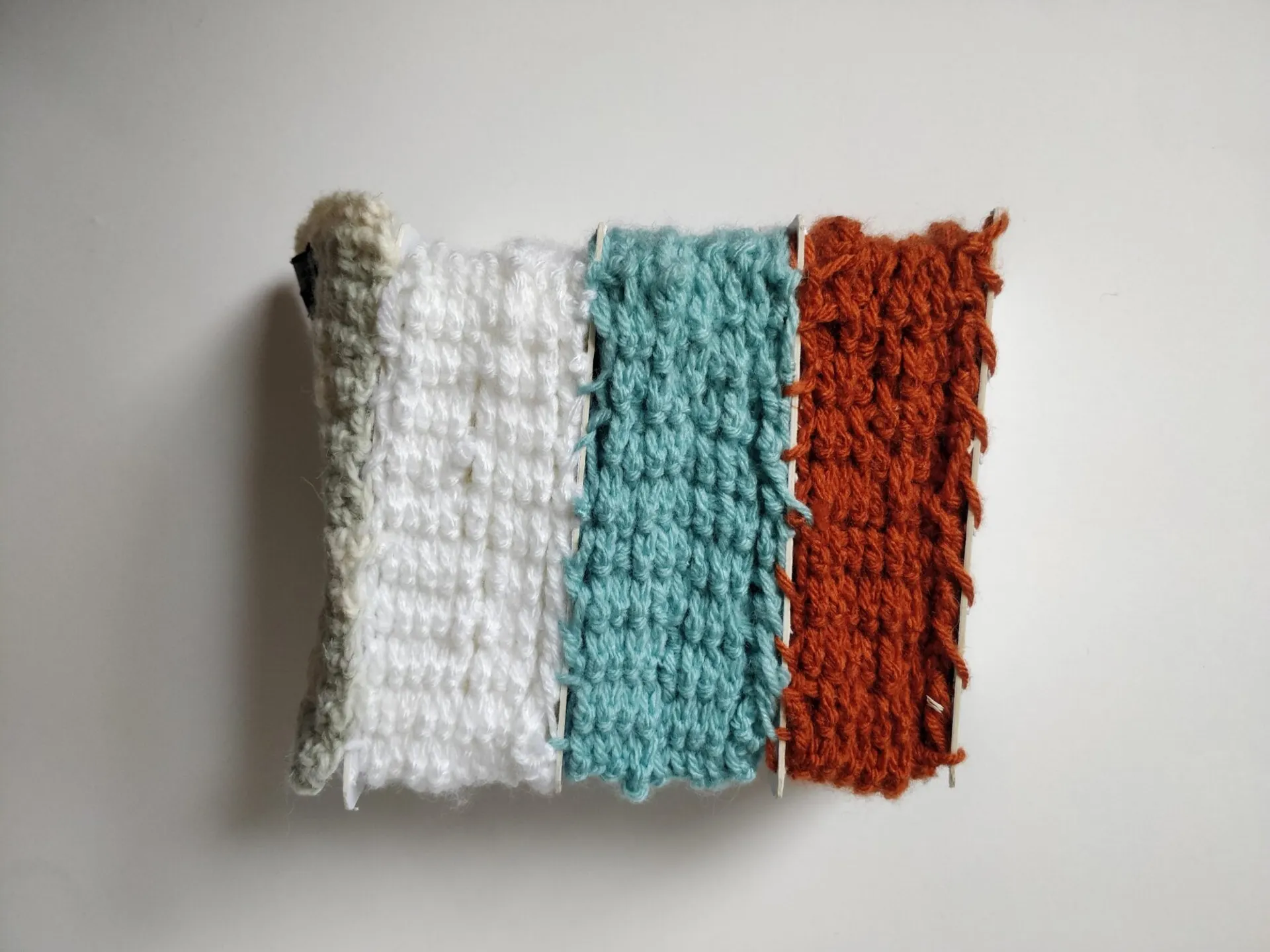 The specimen jumpers show the limits and restraints of type design combined with the tactility of crochet and how this affects the visibility of type. Explored through three different typefaces, they display how serifs, black-letter and a consistent point size appears in crochet. The colours display close-contrast, exploring the use and visibility of colour.