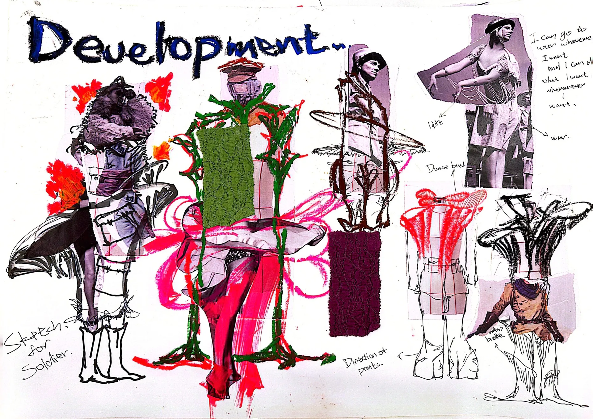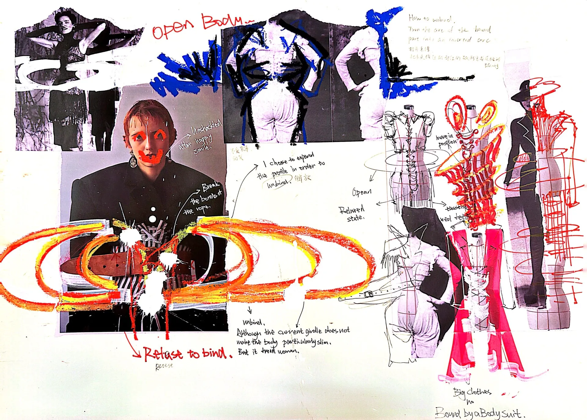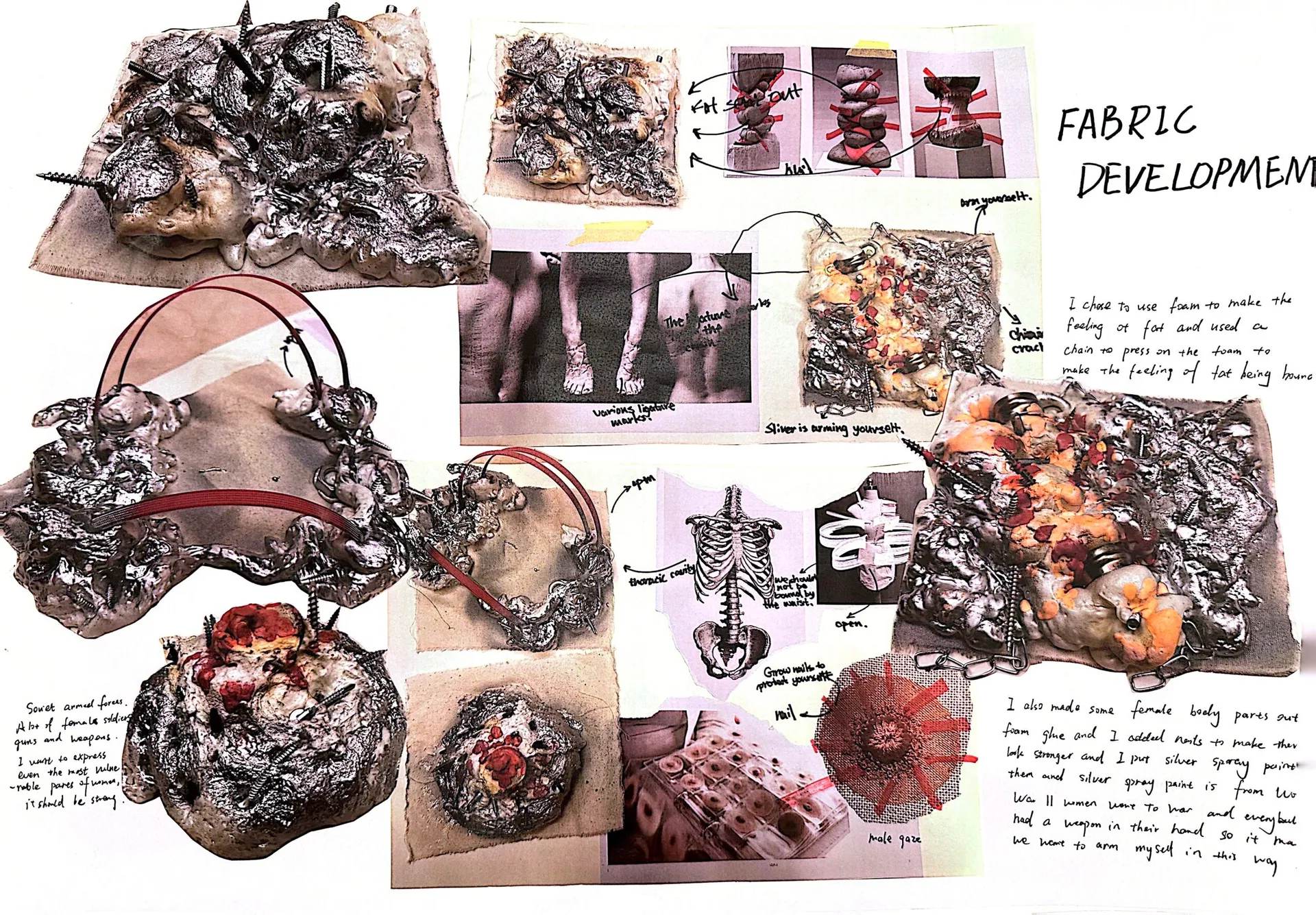 The goal of the project was to create a unique fashion collection that addressed social norms, workplace inequalities, body image and historical constraints on women’s rights. The collection seeks to empower women, freeing them from limitations and embracing individuality. Furthermore, the relationship to the groundwork builds on previous work on gender inequality and social issues, and the project delves deeper into women’s rights and expands on fashion’s role in social change. It will showcase growth as a designer and a commitment to fashion as a platform for advocacy. Based on this, the challenge of this study was to push the creative boundaries, a project that combines unconventional materials, bold design and thought-provoking concepts. By critically evaluating the messages and implications of this research work, this research aims to inspire others to question traditional gender roles and expectations, demonstrating this research’s dedication to growth as a designer and challenging the status quo.