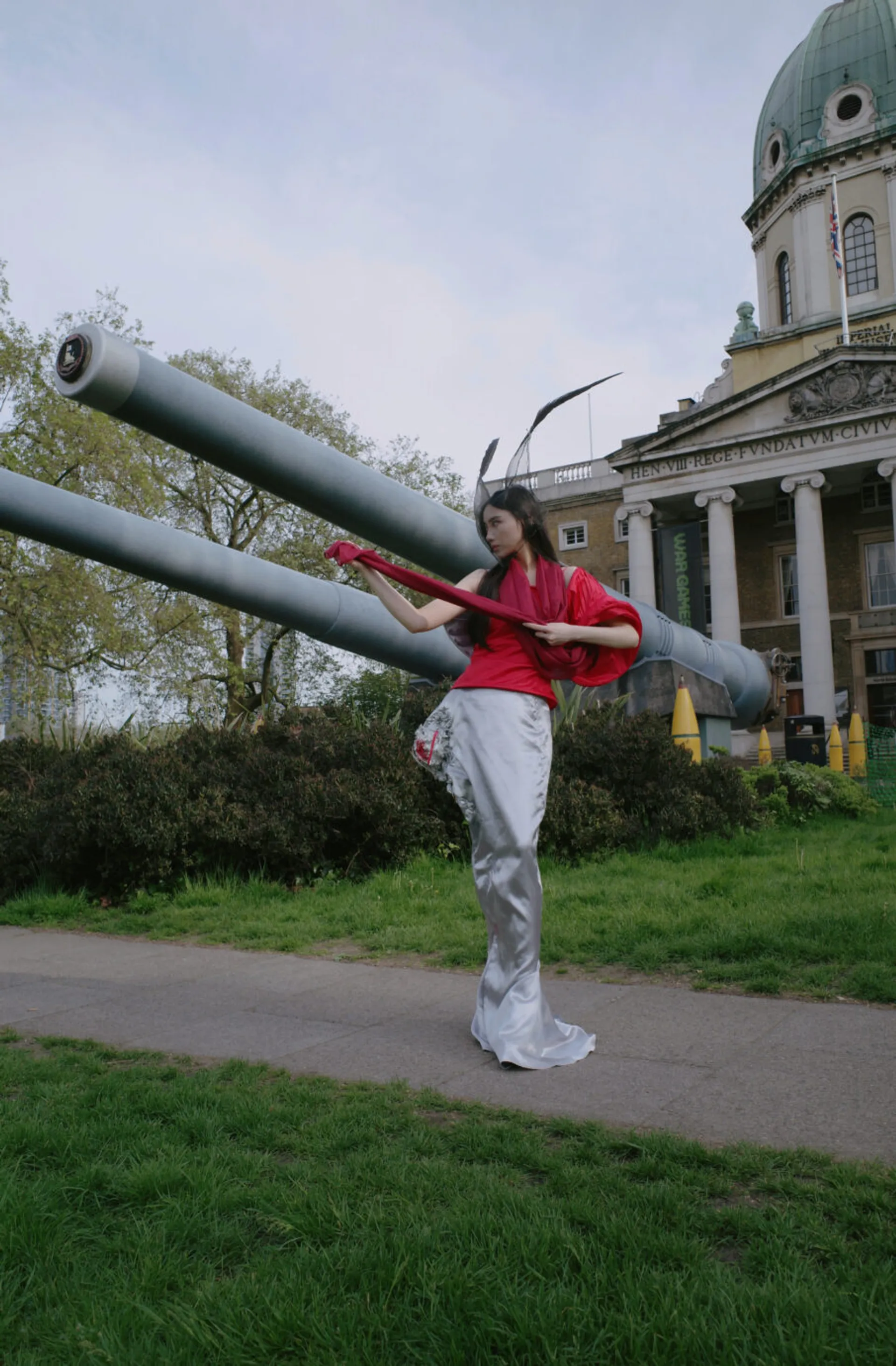 I add nails, combined with the Soviet armed forces, a lot of female soldiers guns and weapons feeling. I want to express even the most vulnerable parts of women, it should be strong.