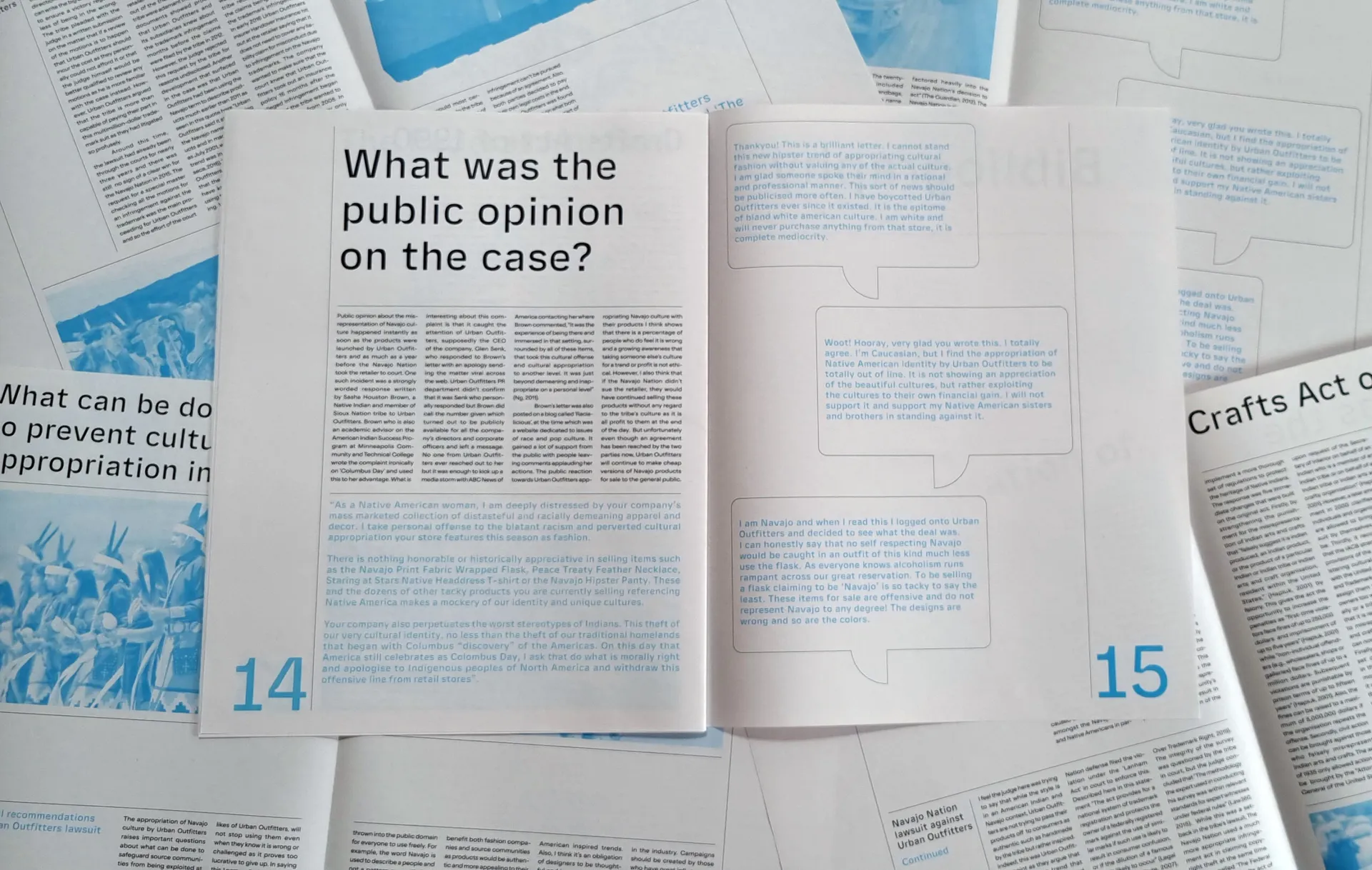 Using a newspaper publication to report back the case and issues of cultural appropriation felt the most applicable format to publish my dissertation.