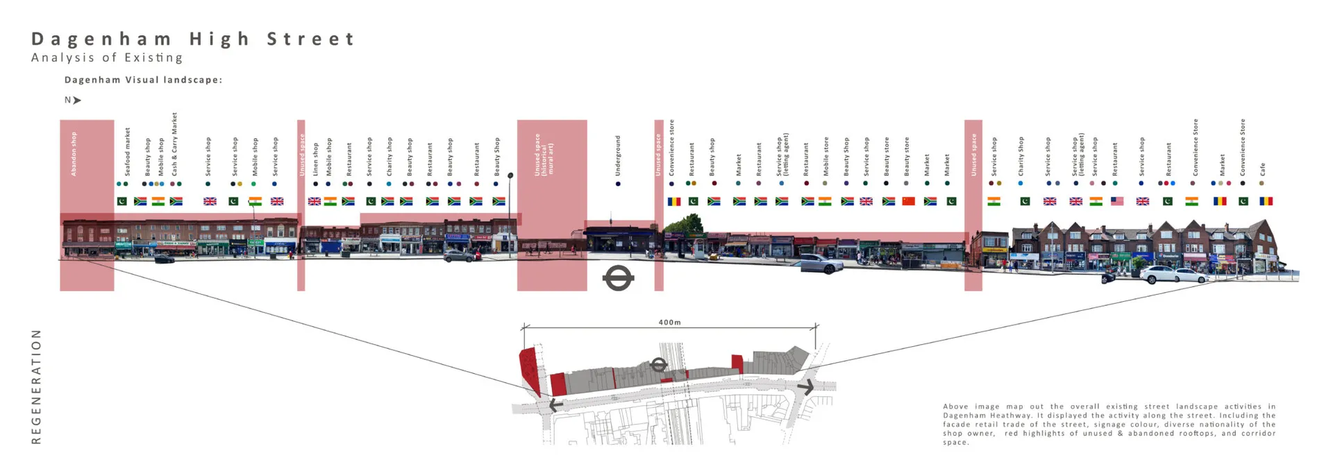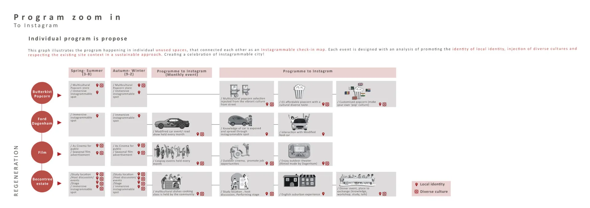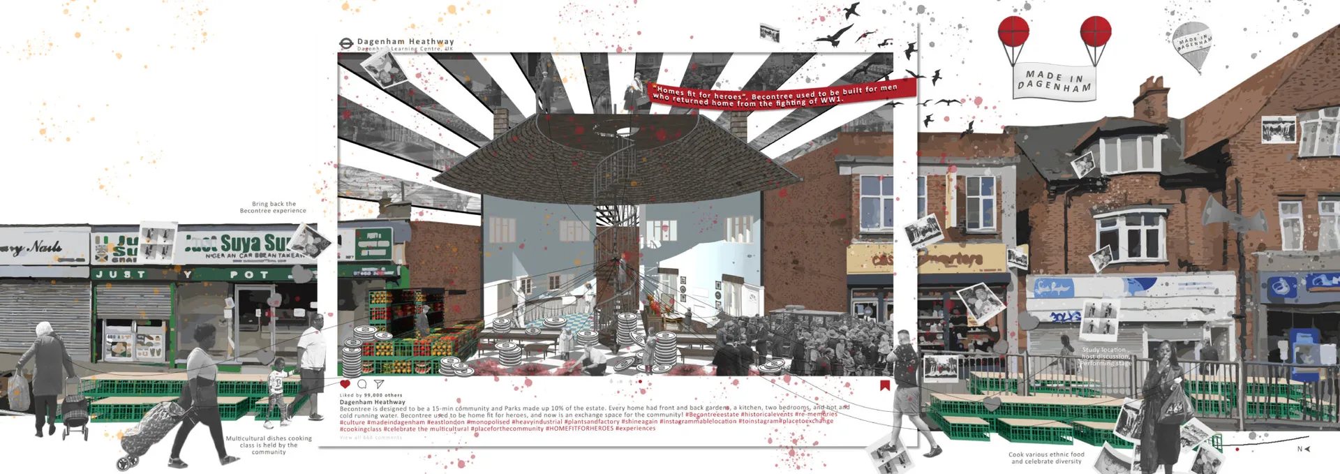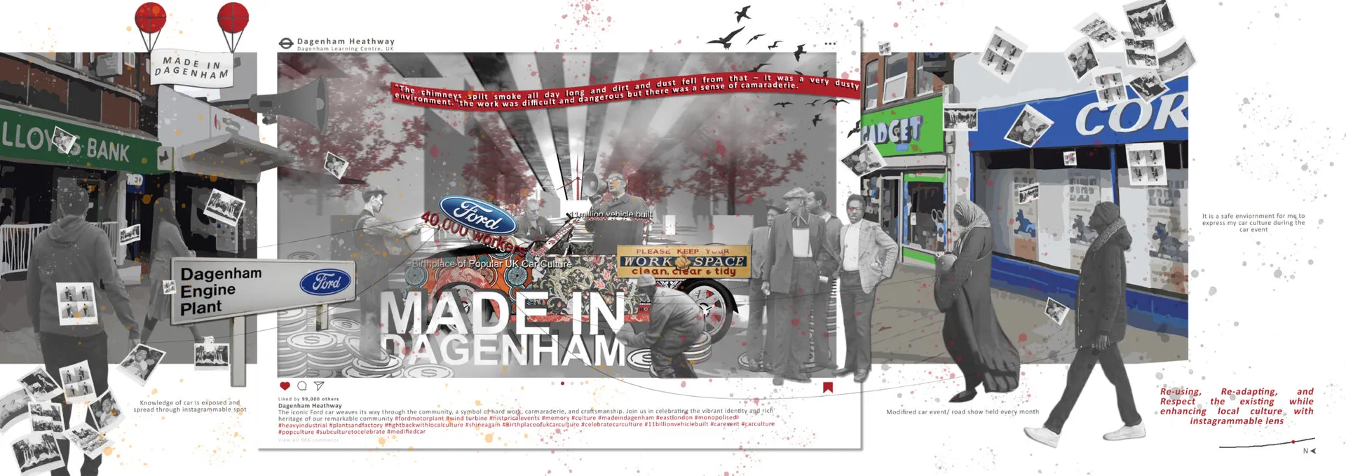 London has been designed in a monopolized way. A tale of 4 cities: The East is poor, the West is posh, the South is rough, and the North is intellectual. Dagenham is on the east edge of London, with heavy industrial plants and factories. But what if ‘To Instagram’ became a design agent, advertising and rebranding the deprived area for the community, celebrating the historical and iconic events of Dagenham? Boosting tourism and business that benefiting the local community through the Instagrammable lens.