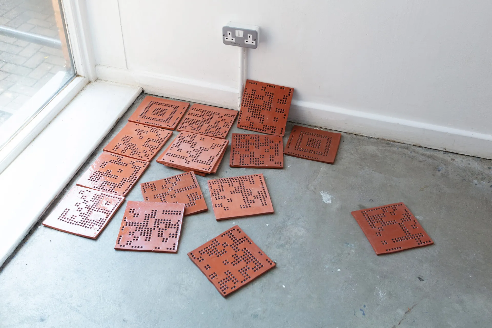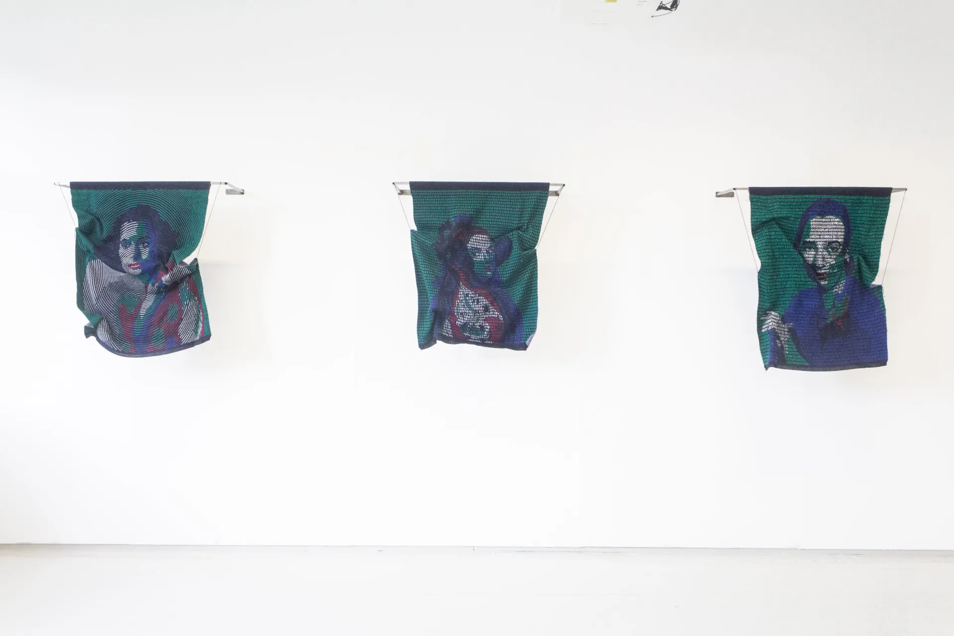 The artist reflects on her own experience of working in knitting factories in India to address discourses around industrialization which remains entangled within India’s colonized history. In her recent works, she juxtaposes the sociopolitical nature of language with the binary logic in computers and analyses it with a decolonial lens. The artist often evidences cyberfeminist takes on language by foregrounding coded information and patterns in her works, thus stressing on the labour of handling secrecy systems and investigating what the philosopher Ludwig Wittgenstein calls the “private language”.