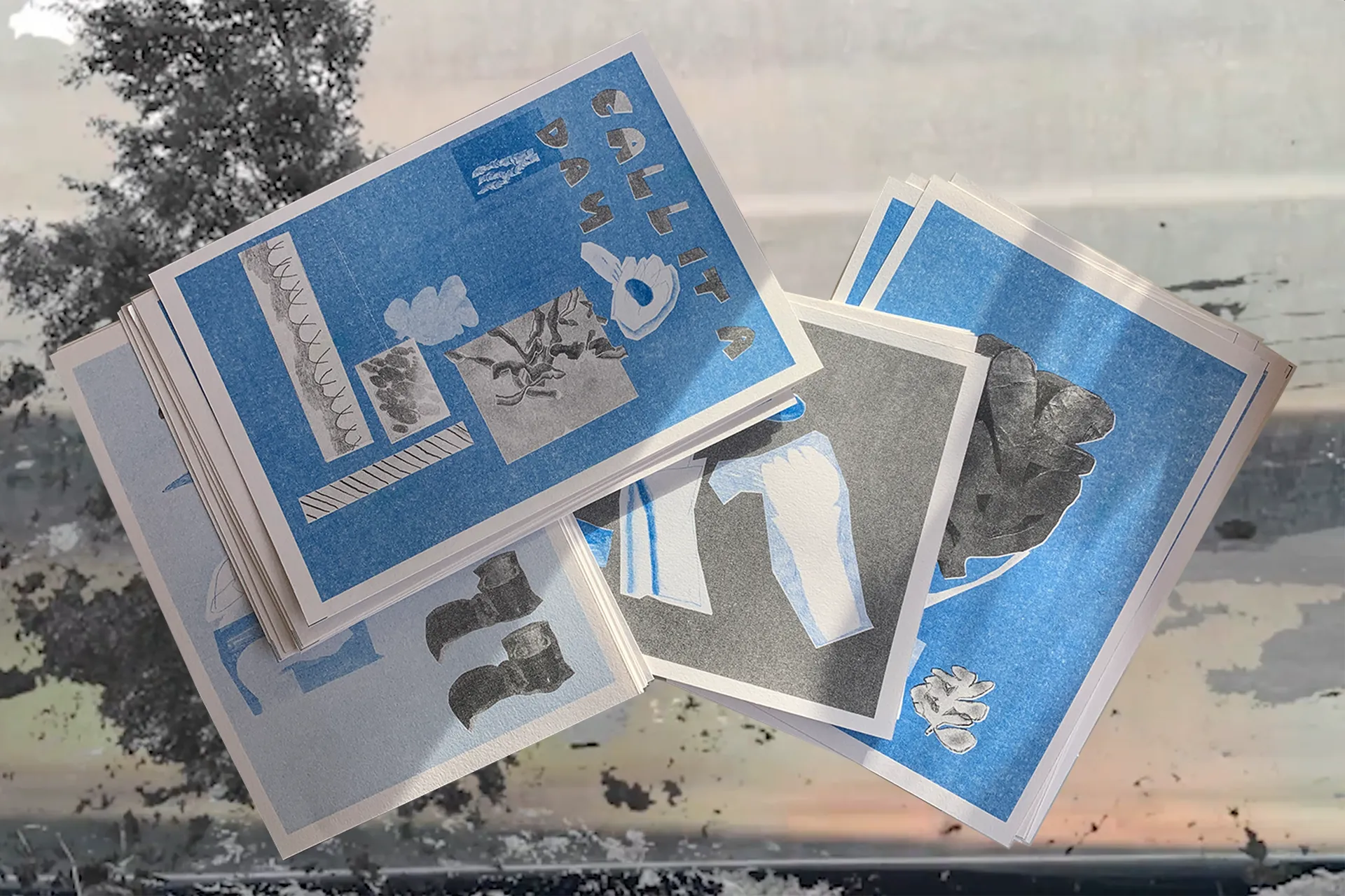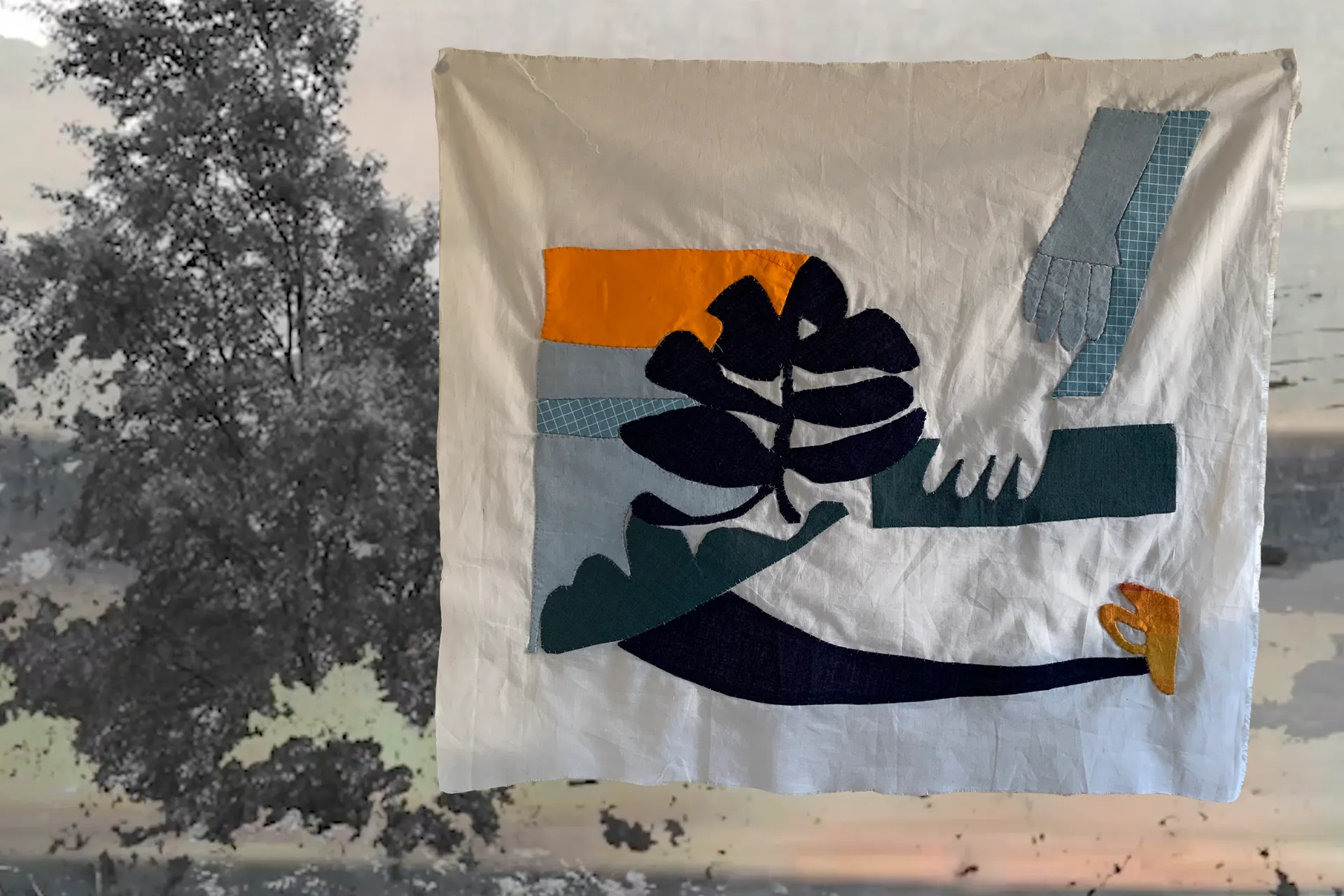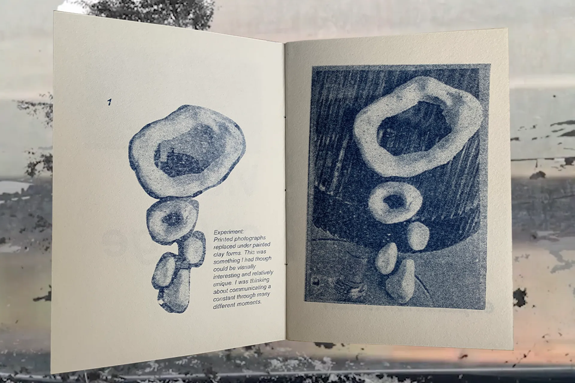 The animation is followed up by illustrated objects documenting process and also developing further on the outcome. This can be seen in a riso printed zine, a papier-mâché sculpture, an Appliqué piece, and a selection of riso prints.