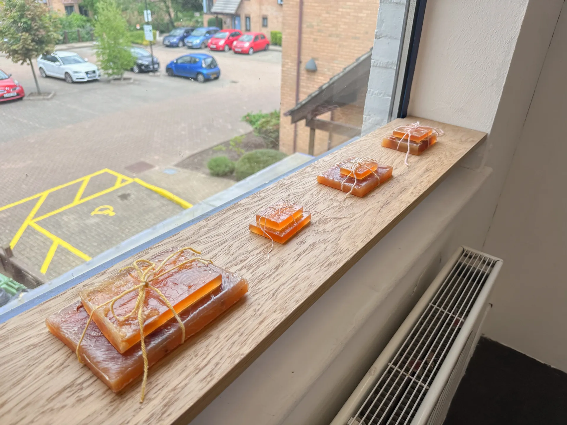 Working in the comfort of my own kitchen, my work focused into the notion of handmade and gentleness in an era of automation and chaos, whilst being conscious of the sustainability of the materials being used. The viewers will become witnesses to the care I provide for my artworks and the direct connection to my hands in a technologically saturated time. I aimed to create a space where the viewers can slow down their gaze and dedicate their time and attentiveness, in order for them to learn how to focus to see something very quiet and subtle. In doing so, it will enable them to be in a positive mental state where they are immersed deeply in the work and can even momentarily forget about the stress of urban life.