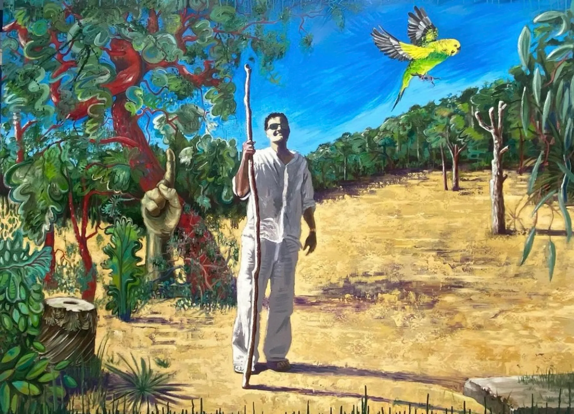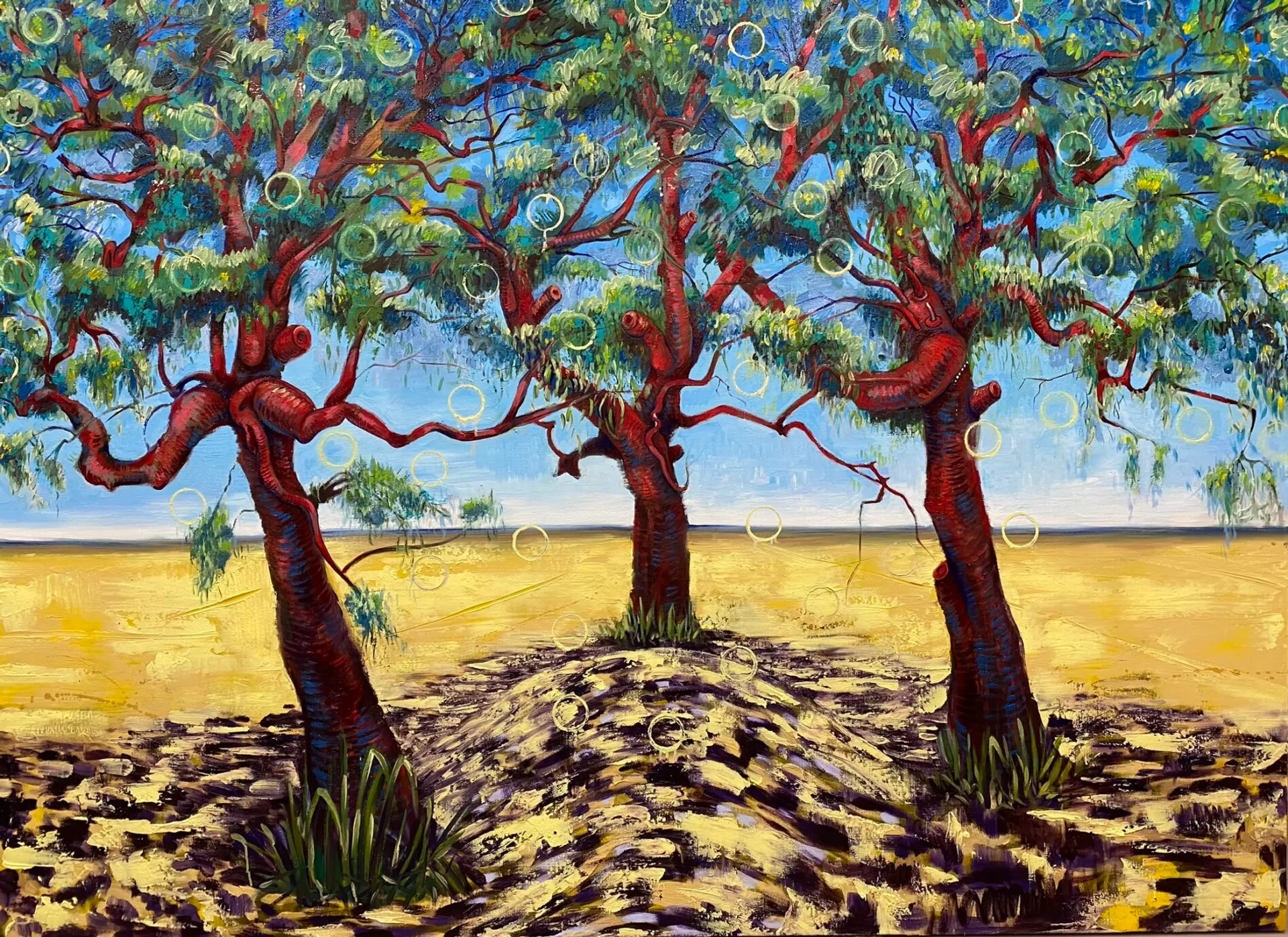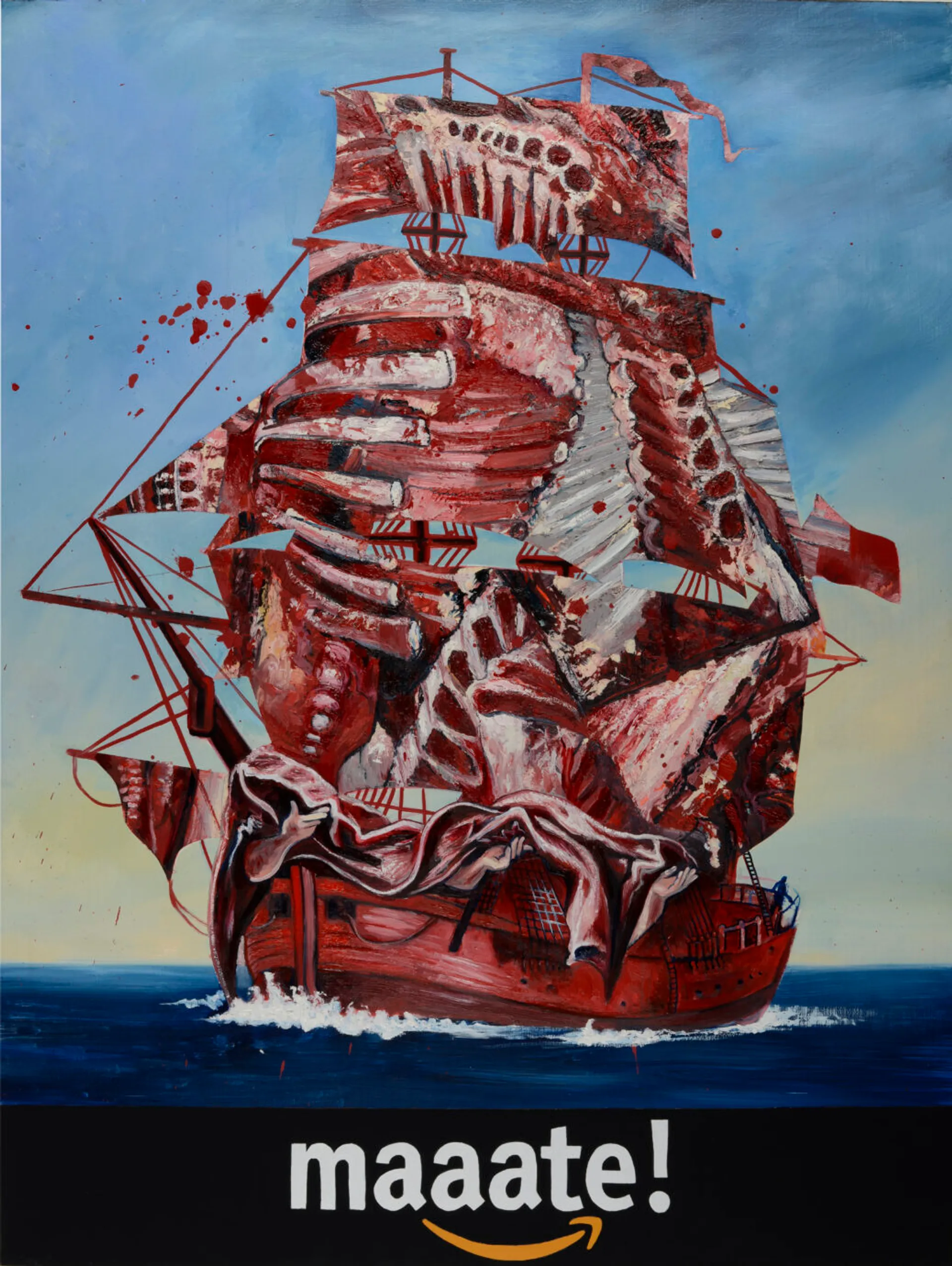 In a recent series this theme is explored through representations of the wild, sun beaten Australian landscape represented through a 19th century European landscape painting lens, ushering notions of history, storytelling, sustainability and the impact of development today. In other recent work, ‘Heroes’ of the British Empire, Meatships, modern political conflict, and historical family photographs all form different series of paintings. I want my work to encourage multiple readings, to be unsettling at times so the audience goes through a process of interpretation and unravelling with various entry levels.
