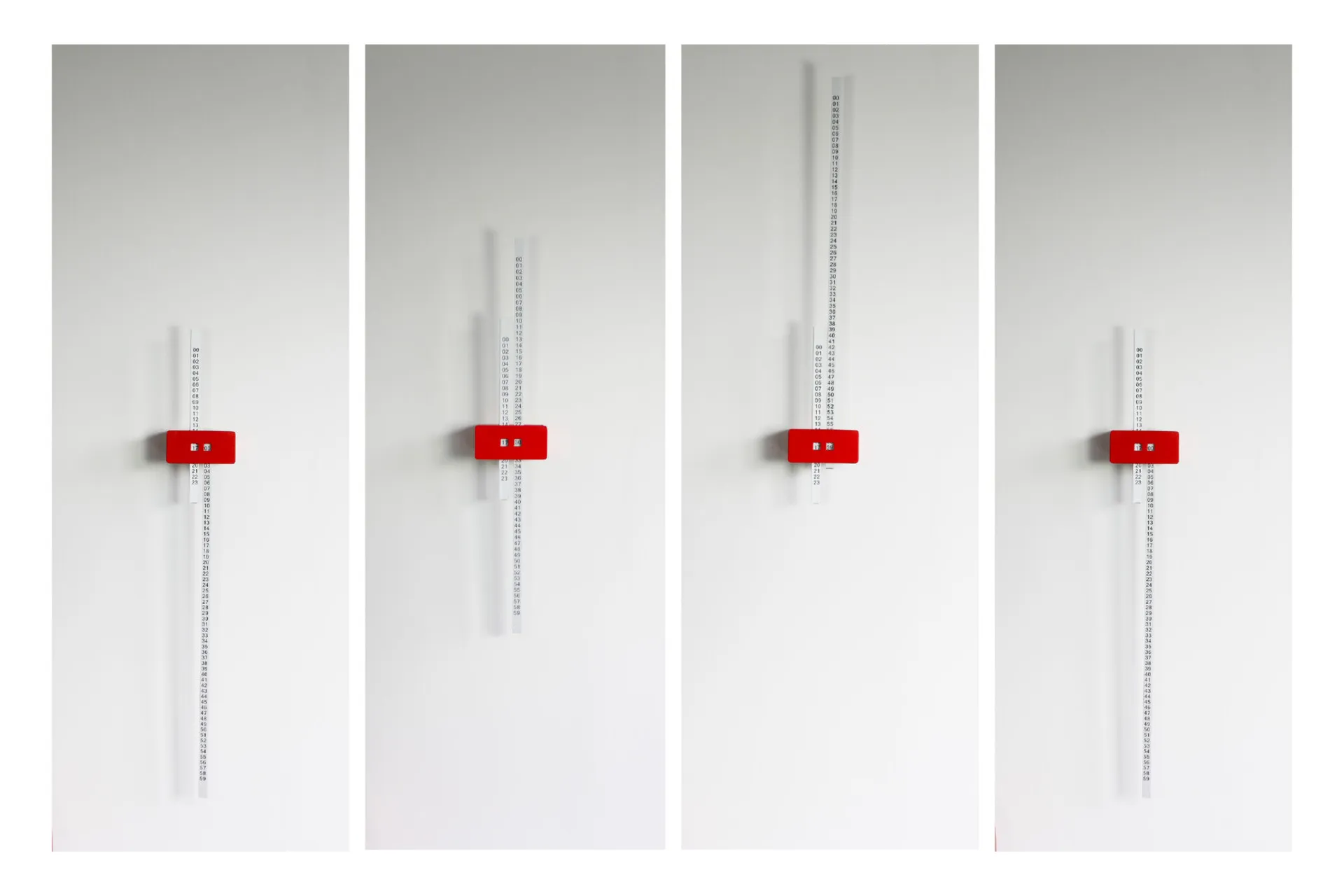 A new way to watch the clock. A fully functional motorised clock that plays on our expectations of analogue and digital. It has always confused me that clocks go round in a circle. Time to me is linear, a one way trip, a thought that is both exciting and terrifying, and our clocks should show that. Linear is a mechanical clock that rises and falls, each drop marking an hour or a day.