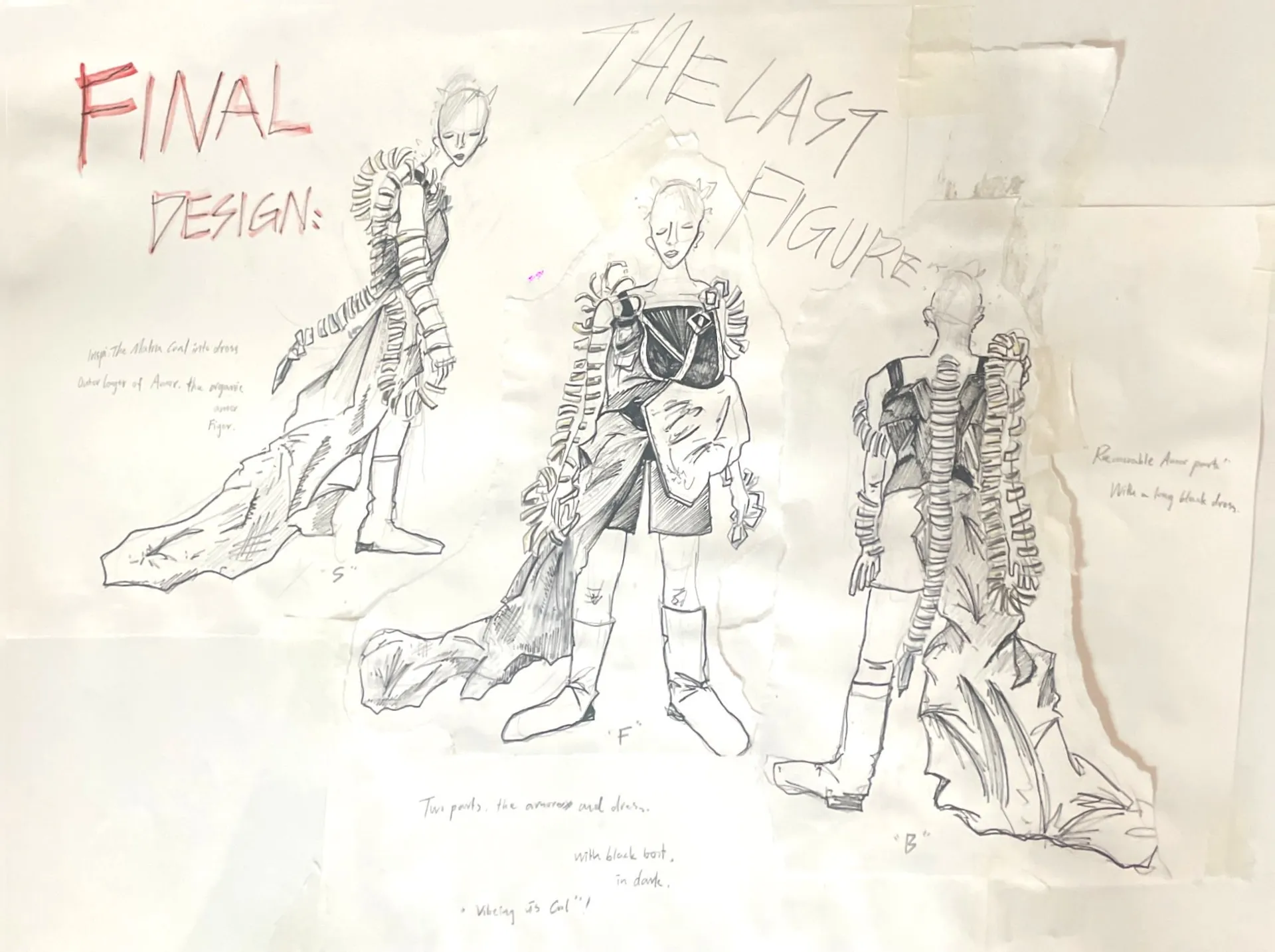 In this Final Major Project, my design is a black dress and a set of outer bone armor. My project is inspired by what is Utopia and dystopia. This reminds me of the moment I’m living in, where our era is about to take the next step and AI is the future. The feeling AI has brought to me is contradictory. It can bring huge changes to my life and experience. When life is good, we are secretly controlled by AI, which is much more powerful than us. So I wanted to go deeper into that.