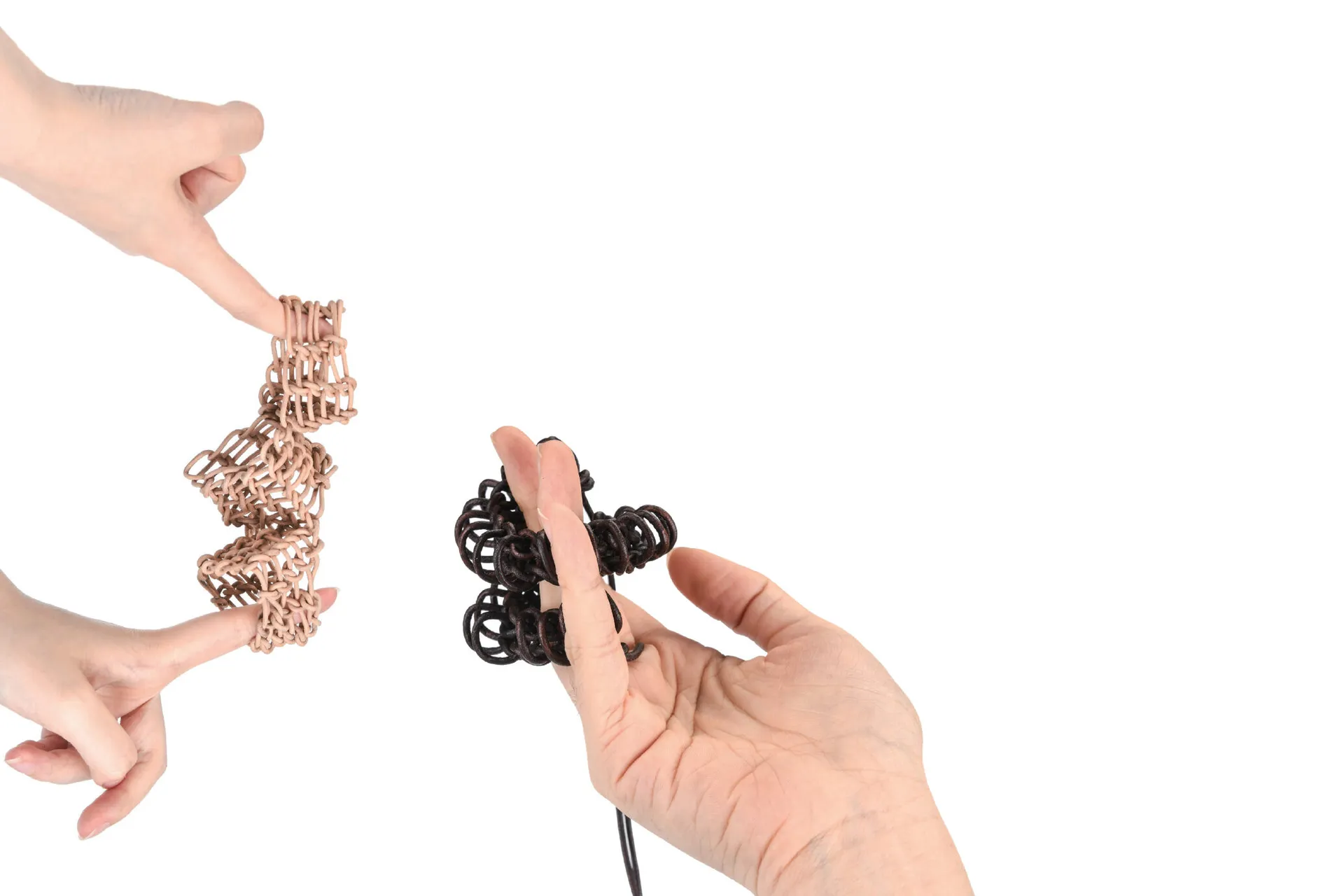GEOMETRIC WEAVING is a contemporary approach that explores traditional crafts combined with modern technology. The geometric structures achieved are in stark contrast to those of traditional weaving.