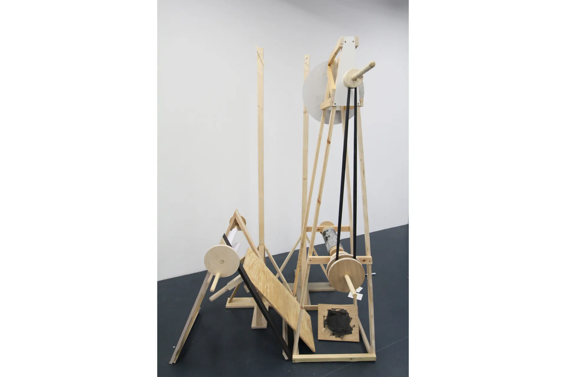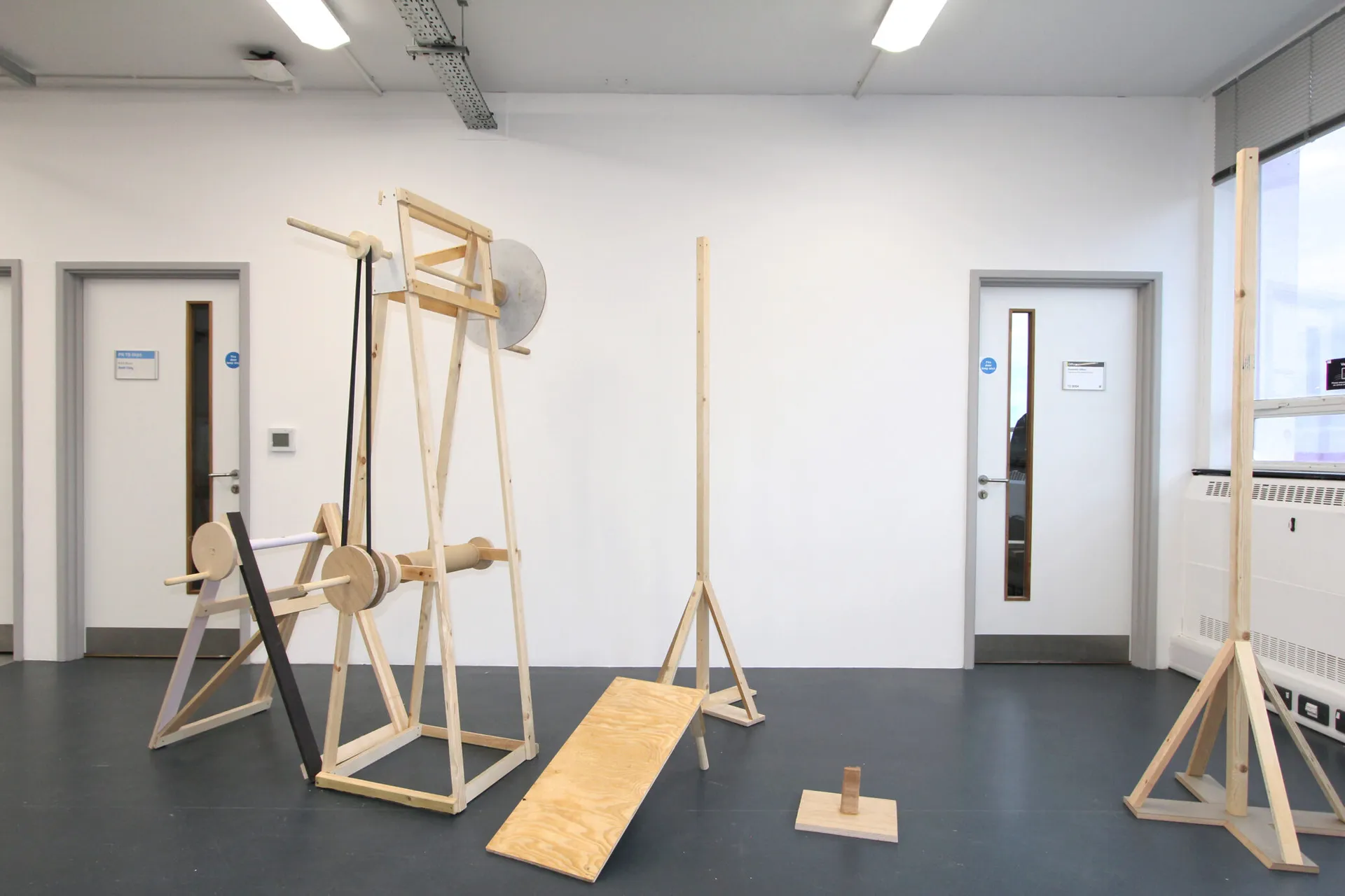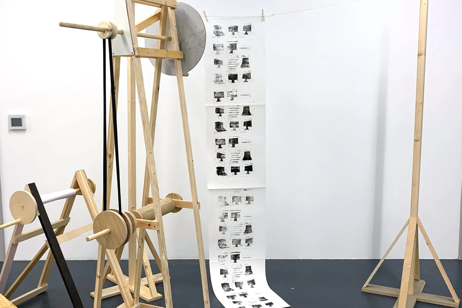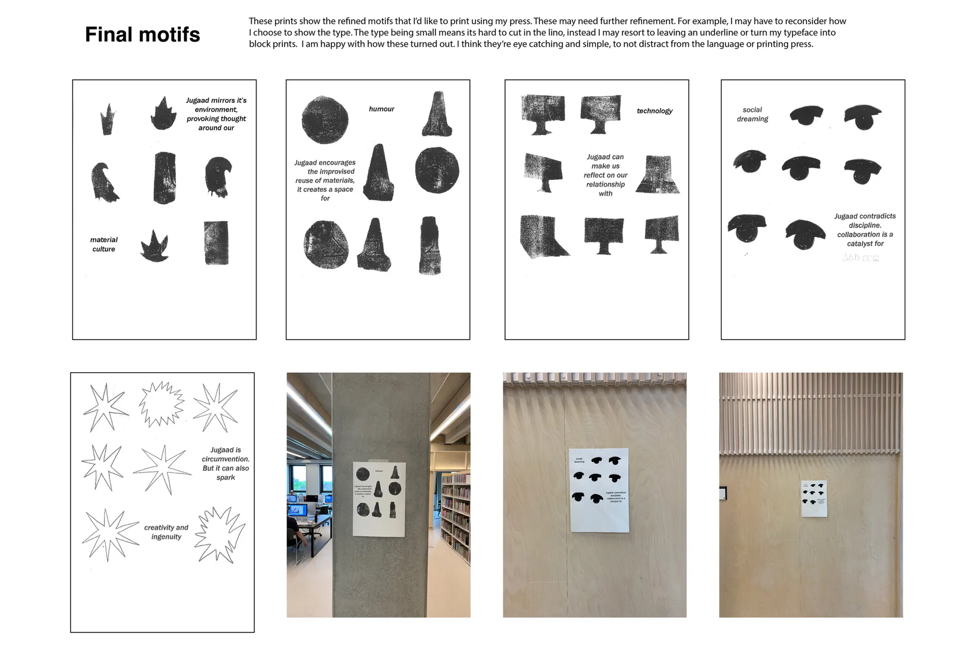 I am proposing this printing press as an opportunity to reflect on our own realities. This contraption is set to be used in a future studio setting where the ideas around studio culture are ever changing. In this speculation, the need for human intervention and tradition has been economised as technology becomes a framework of which we find ourselves trying to navigate. Awareness around processes and self-sufficiency becomes cloudy. This printing press encourages collaboration and restores a common philosophy within a studio space. Most efficient with five people, it requires a collegiate force for it to function. The recycling of materials encourage us to be environmentally conscious. The frugal, unpolished nature of the contraption fosters humour. Jugaad highlights dilemmas and actively seeks for alternatives. Not a ‘better’ way, just another way.