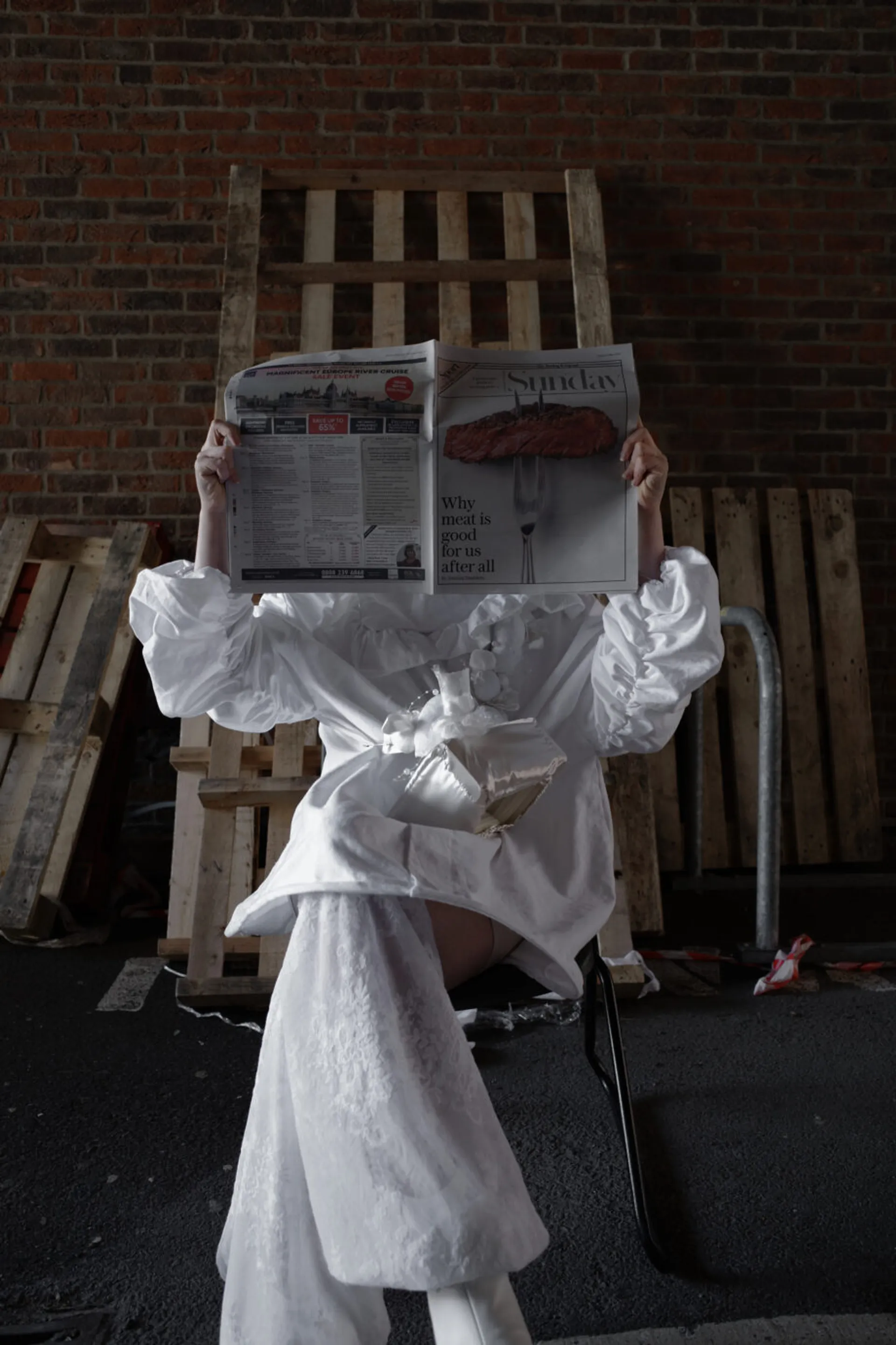 My project title is Wealth and Poverty, it is basically expressing the rich don’t care and cannot see the poor’s situation. The inspiration is from a performance art practice – Instant Possession and my experiences which I have studied in international school and local school, it meant I have met friends with two different economic levels, I sympathised with my local school friends. I did many research on two sides then reformulated the concept. For my garment, I would like to make the garment more interesting and not that boring therefore I decided to develop in stupidity direction. I compare the flowers in the greenhouse to the stupidity of the rich who are overprotected and ignorant of the outside world because they can only deal with people of the same class as themselves on a daily basis, ignoring the situation of the poor. I also think that their stupidity is simple in stead of just foolish so I think they are like babies, which is pure and ignorant. My final garment was relevant to the flowers of greenhouse, bib of baby and curve line, which I think it have the sense of clumsiness. The colour of my garment is white because their ignorance are like a blank sheet.