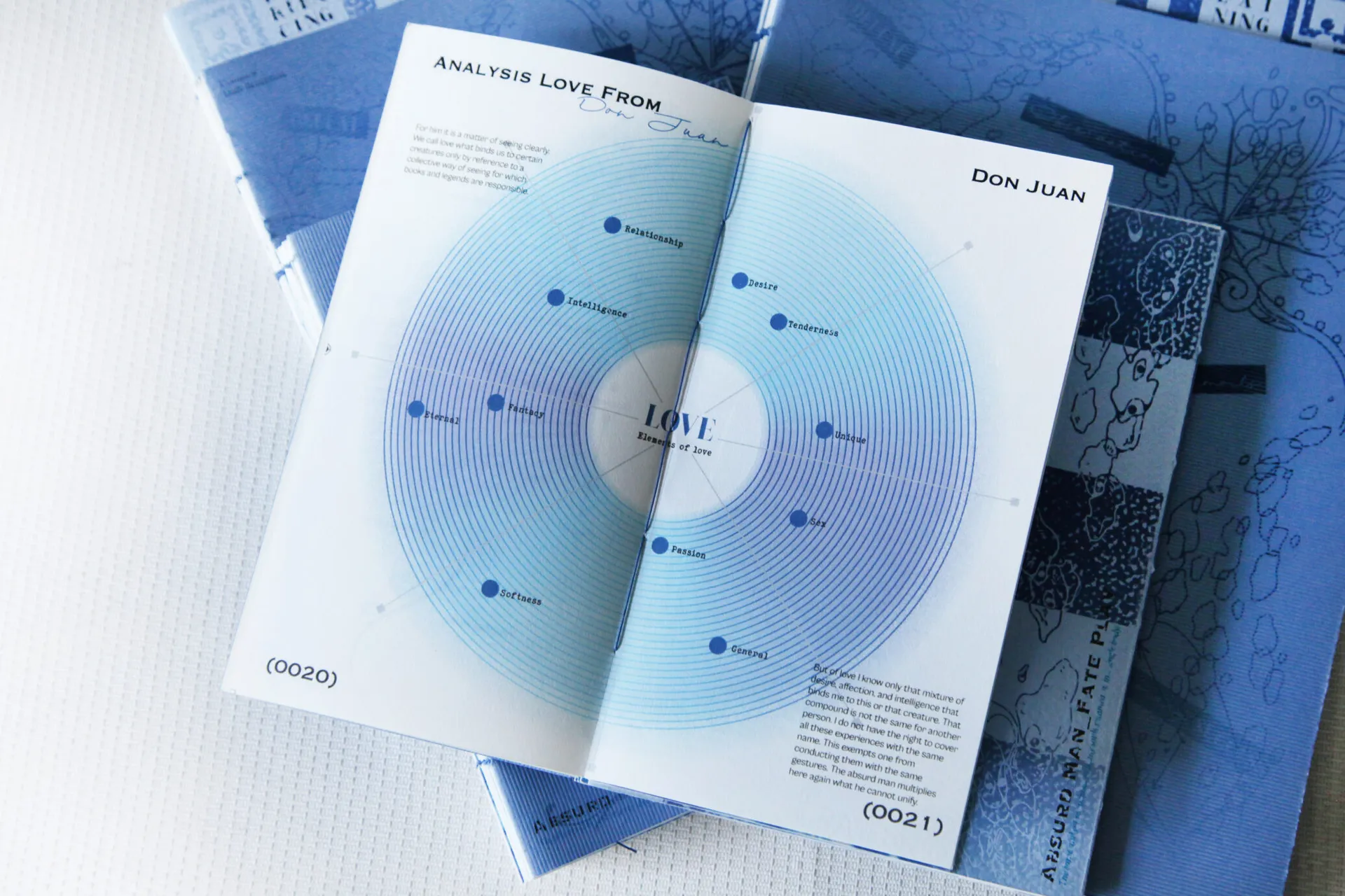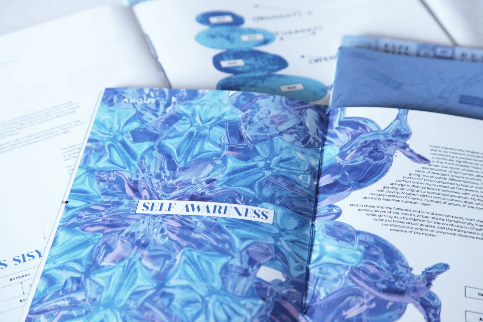 Derived from Camus’s work “The Myth of Sisyphus,” the notion of the absurd man encapsulates one who acknowledges eternity yet takes no action towards it. The absurd man emerges within the realms of character and daily background, possessing a profound understanding of an inevitably bleak future. In a contemporary landscape marked by increasing homogenisation and fragmentation, the persistent freedom, rebellion, passion, and resistance of absurd individuals offer a potent response to the alienation pervasive in modern daily life. In my exploration of absurdity, I delved into philosophical and spiritual suicide. This literary work is a tripartite endeavour, intertwining a science fiction narrative I crafted, a visually distilled representation of Camus’s series of essays on absurdity, and a speculative and contextual construction of the absurd persona within the modern milieu.