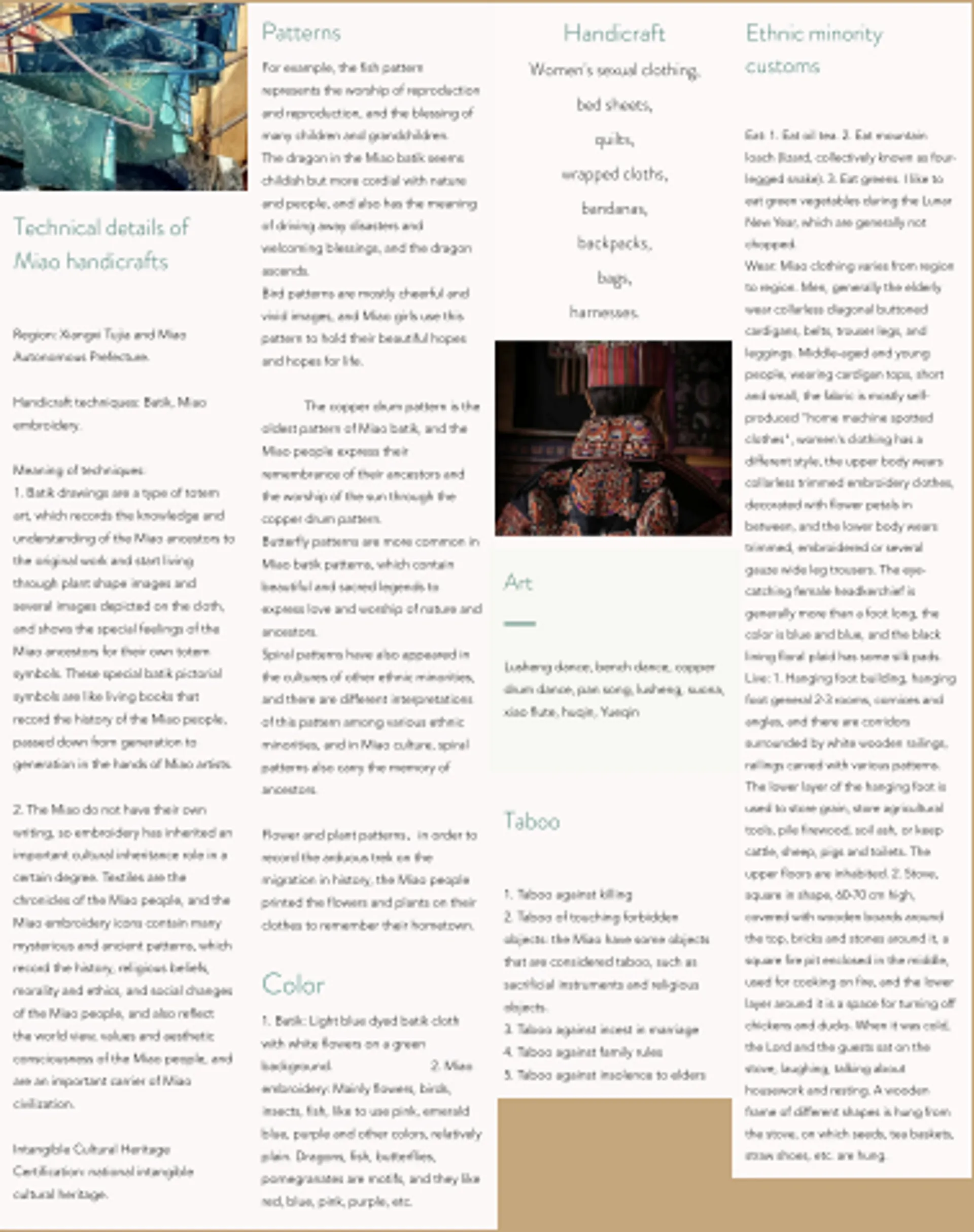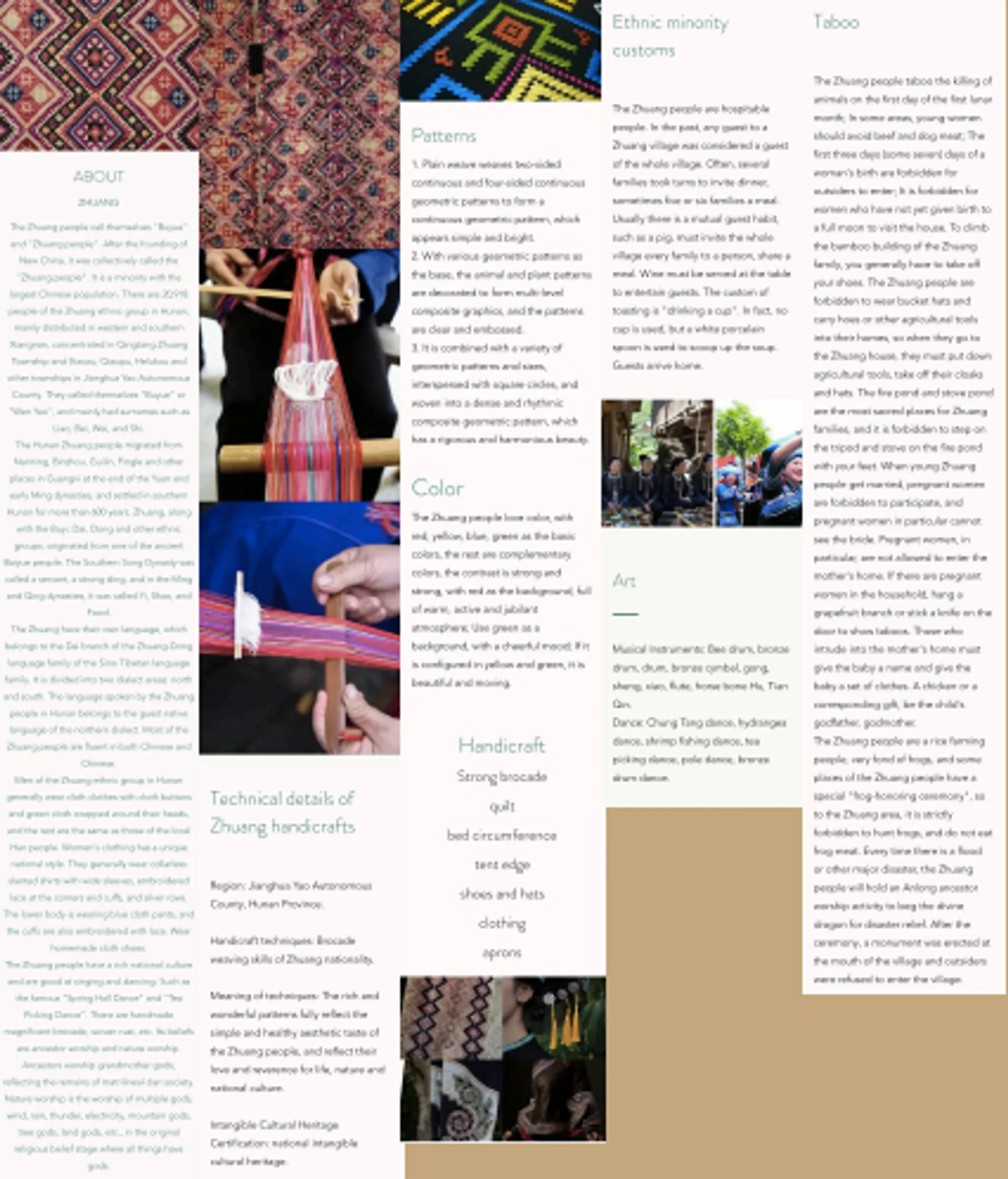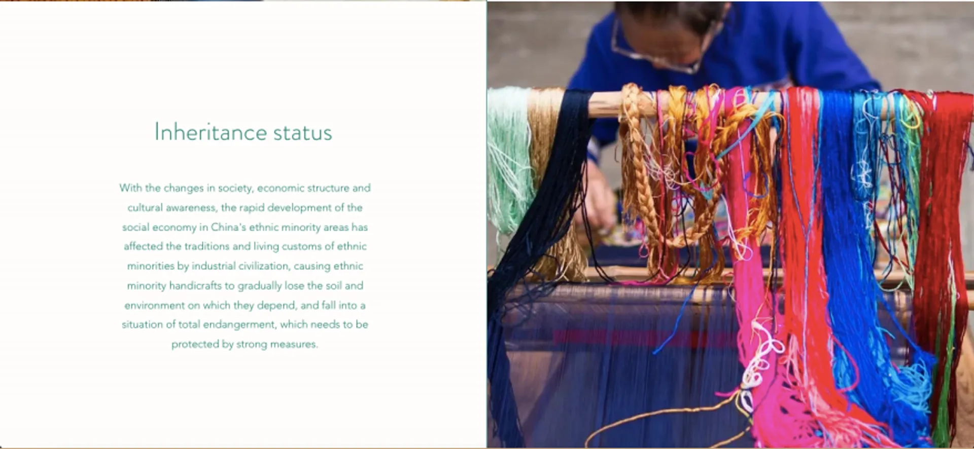 该网站推广中国少数民族手工艺品,具有重要的文化价值和经济意义。该网站详细介绍了居住在中国湖南省的八个少数民族的手工艺技术,以及一些简单的手工艺教学视频和插图,以及他们的历史、文化习俗等,有利于弘扬和传承中国的非物质文化遗产。传承文化,弘扬中华民族传统文化精神。同时也有助于减少时尚产业不可持续的足迹,通过手工艺的推广和学习引导人们从传统文化的角度关注时尚产业,鼓励人们更加关注产品质量,