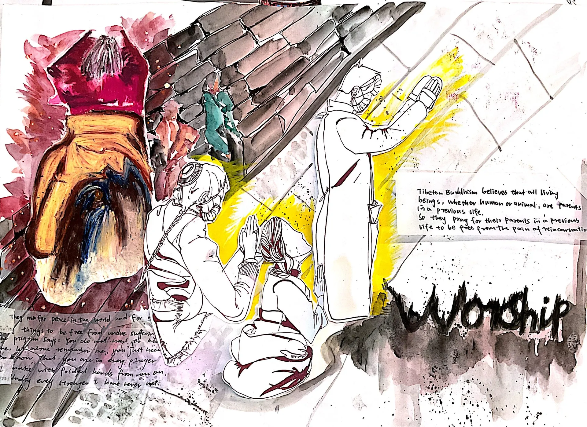 At first I saw the pilgrims from the point of view of a bystander to the authorities. From the beginning I couldn’t understand this behaviour, I thought it was strange to take three long kneeling steps and kowtow, it was a ritual but I didn’t understand why I was doing it. It was like I was alive but I didn’t know why I was living. It’s because I haven’t found that “why” so I can never get through to understand why they do it. People who have faith are also people in authority. They think they have faith, they live for it, and it’s a devotion that I’ve never seen before, and when they’re doing this pilgrimage, they’re doing this so-called absurd act in the eyes of the beholder, they’re doing it with a devout heart, but even so it touches me deeply. It was as if a magical power had come from them. They prayed with devotion and their prayers were addressed to each and every one of us as all creatures.
