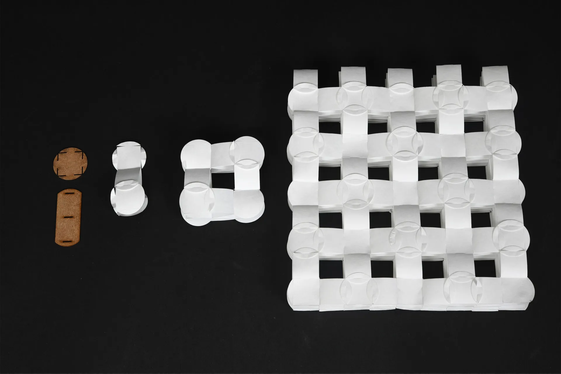 This project is an exploration of origami structures inspired by modular design. An iterative making and testing approach led to the foldable, joinable module that is the foundation for the project. It offers a folding experience for the intended audience through assembly, usage, and storage.