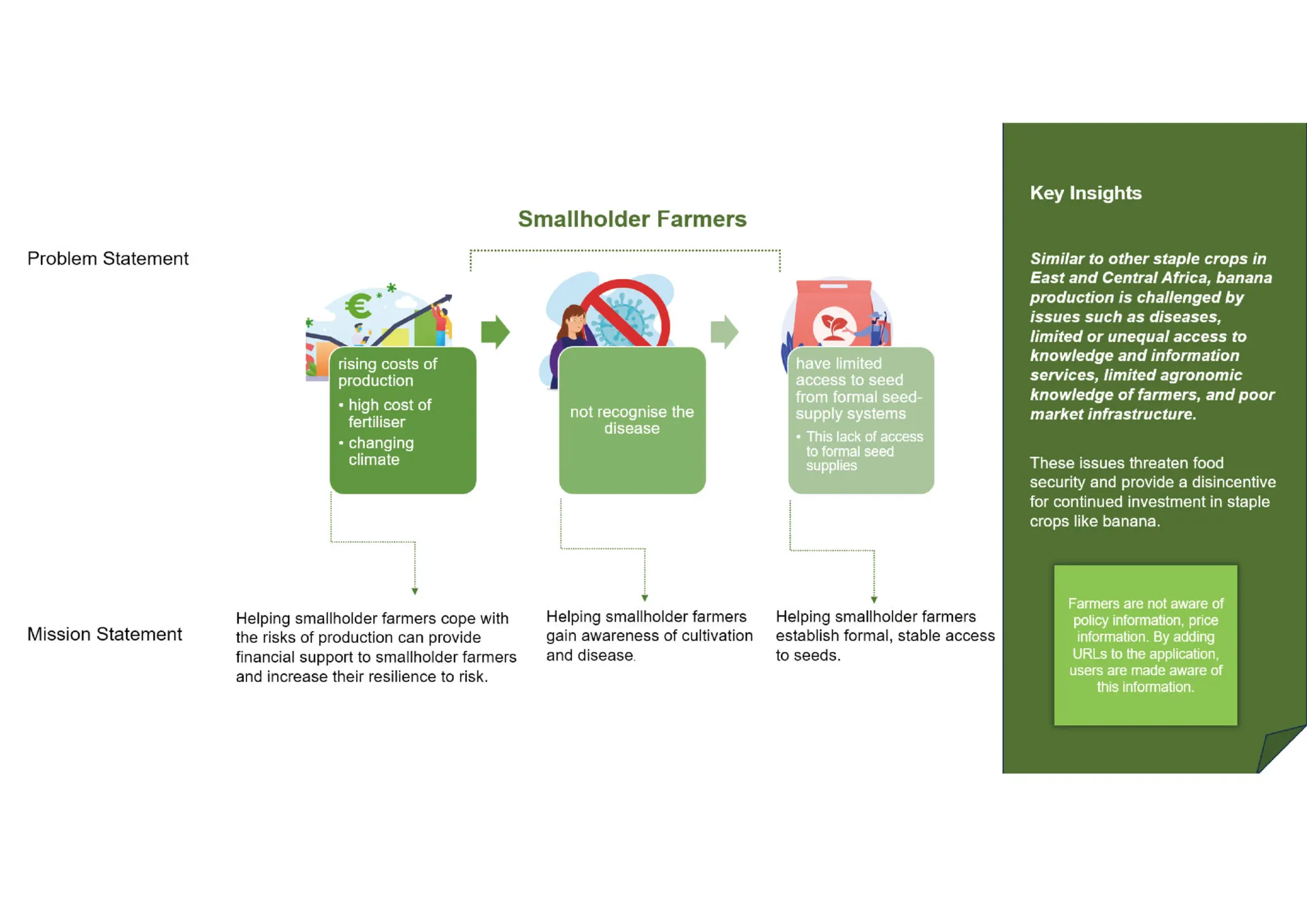 The project responds to the prediction that bananas could disappear in the future. The Cavendish banana that we currently eat is in danger of disappearing due to the TR4 fungus.