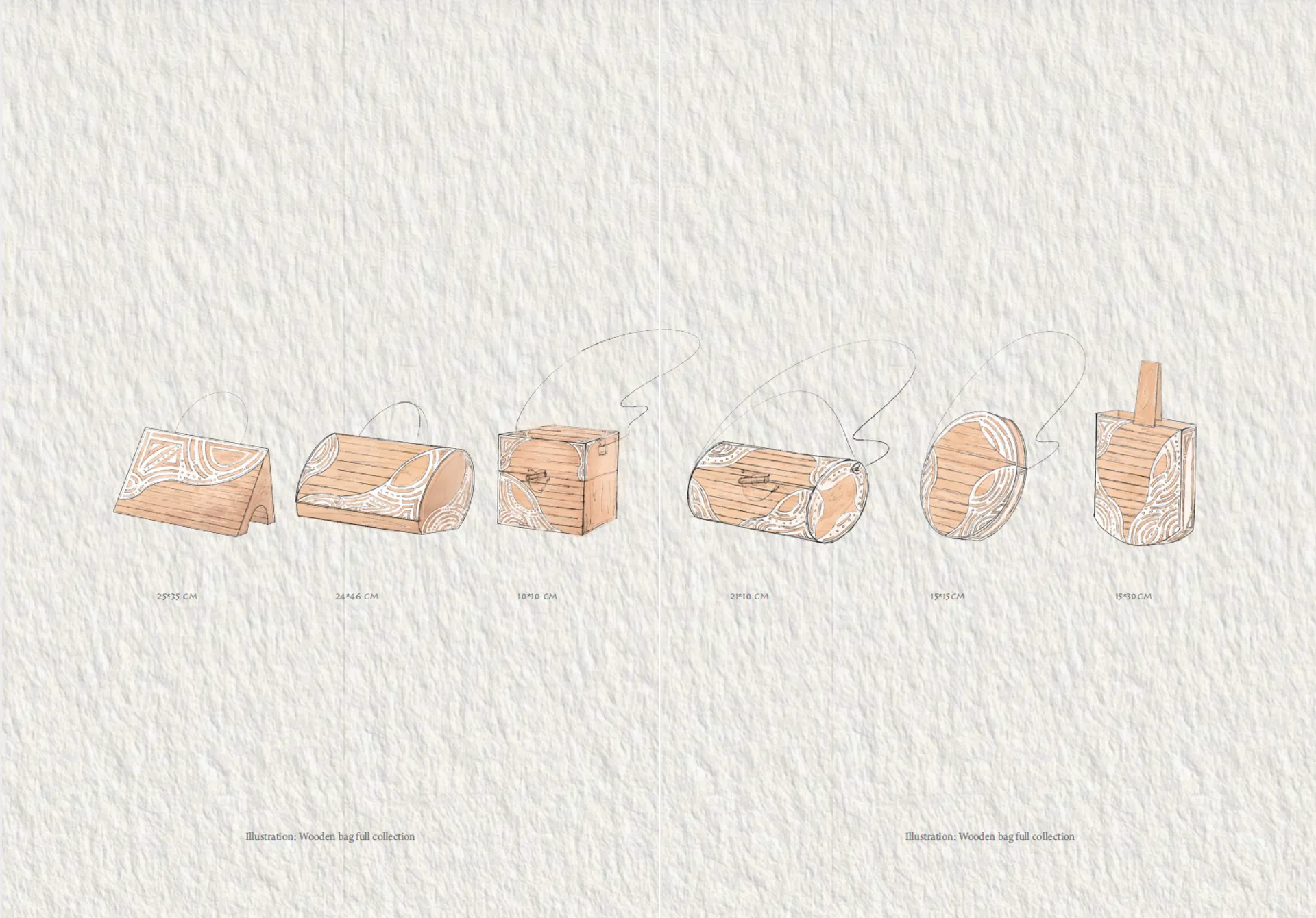 Create a collection of wooden bags through a collaboration between contemporary design and traditional craftsmanship. Reflecting the essence of these masks while infusing them with a modern twist.The project takes an integrated approach, combining cultural research collaboration, product design and community participation.