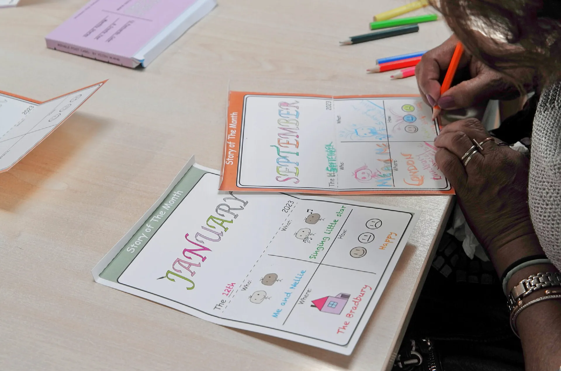 Mingle Post Cards-are a set of post cards that help older people with dementia to communicate and share their monthly stories with their loved ones through drawing and colouring.