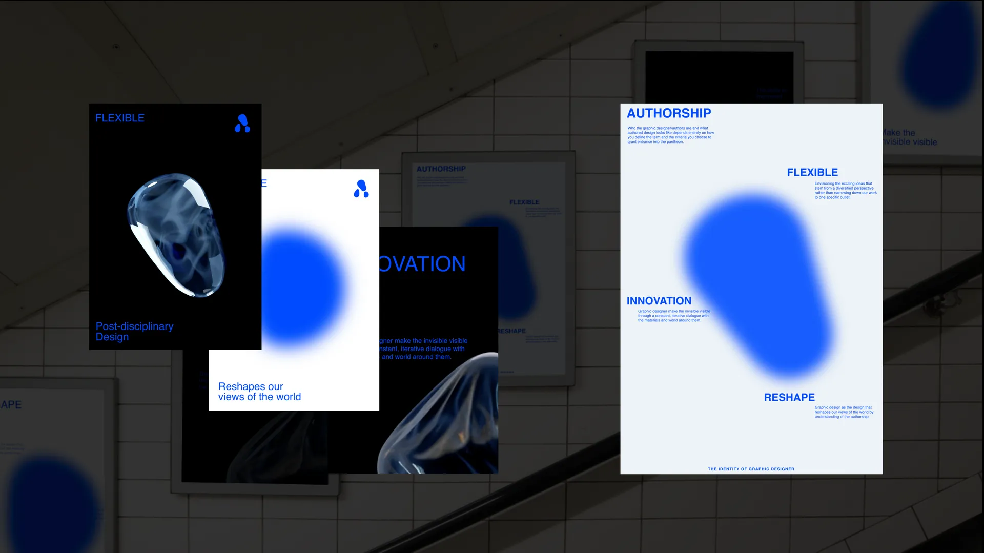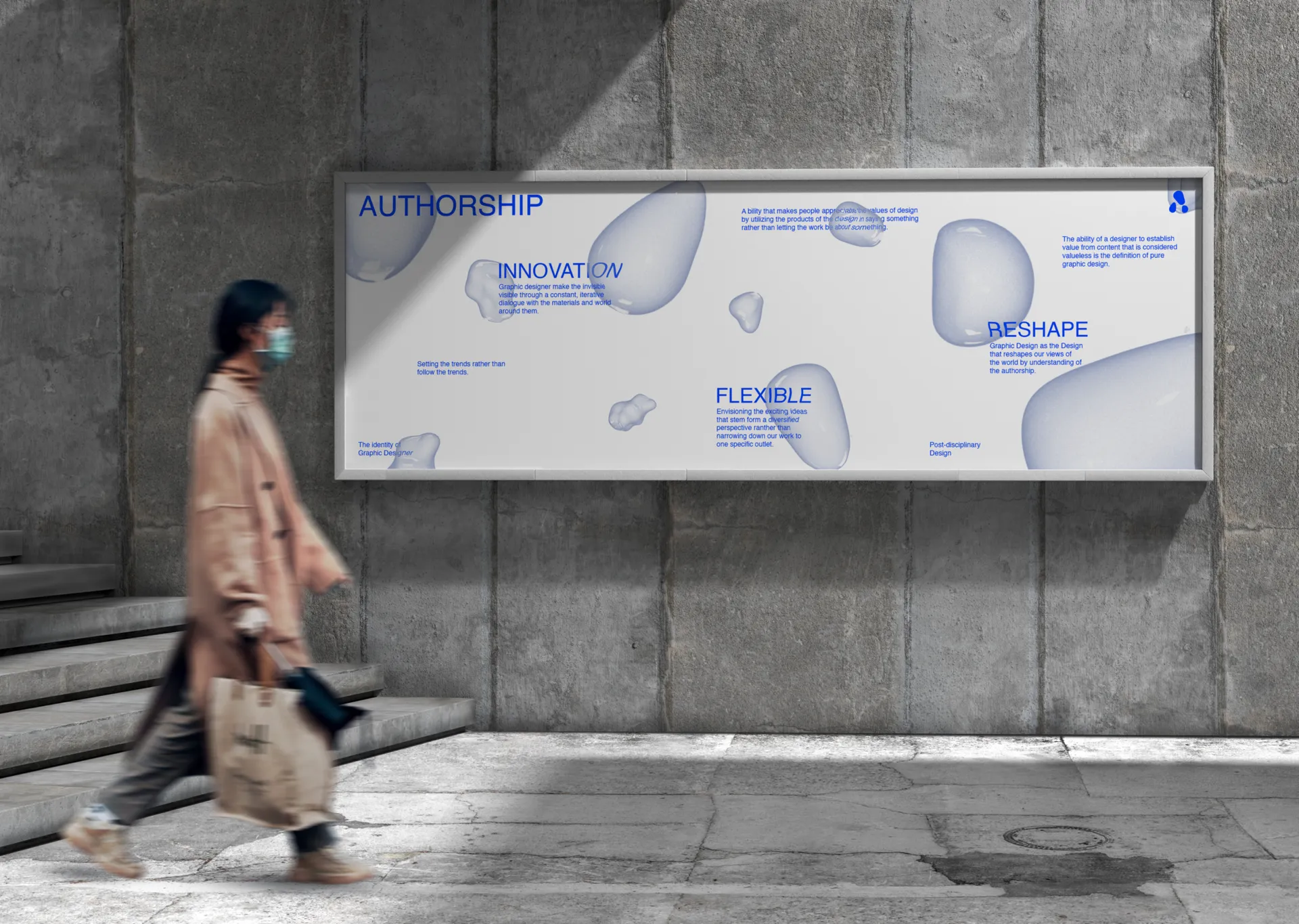 By examining the concern between Authorship and graphic design and redefining its characteristics. The keywords of these characteristics are used to develop the visualisation, and the element of water is used to visualise these characteristics.