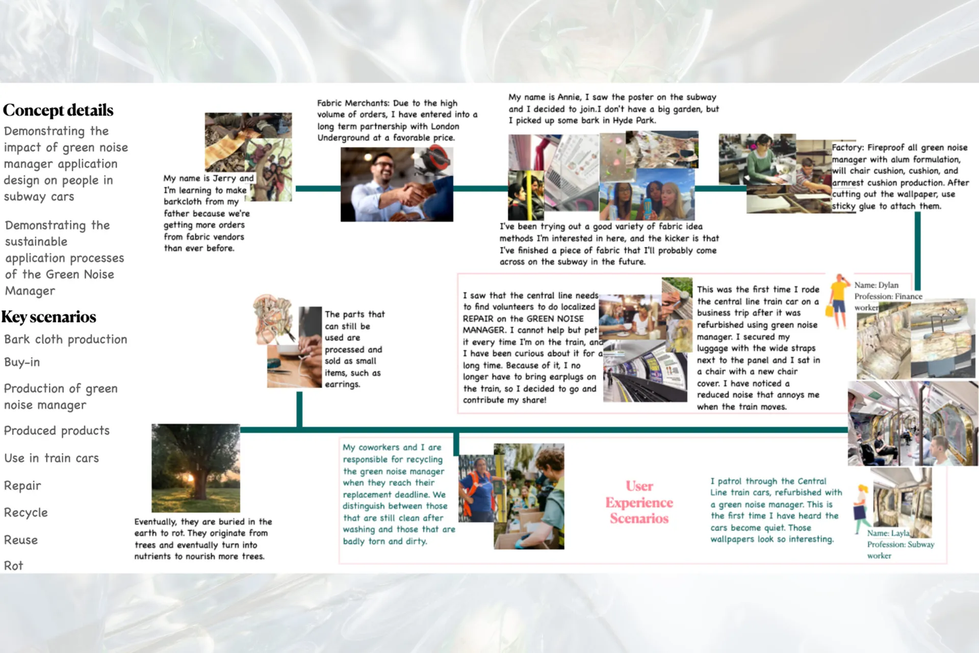 Through Green noise manager fabric design,subway application design,product design and UI deisgn, this project aims to improve the noise problem inside the Central line train carriages, which are considered the noisiest by the subway staff and passengers. It also improves the visual effect of the carriages.
