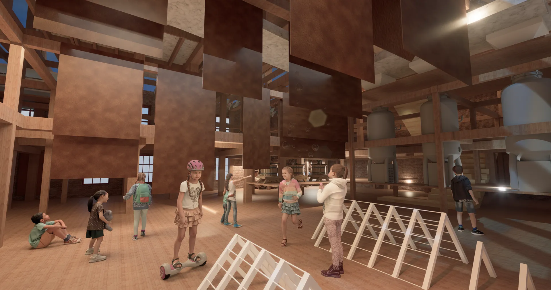 My project is about creating a space involving wine production and the reuse of grape waste to make grape leather in The House Mill in Bromley by Bow, London. To collect a large amount of grape waste, it collaborates with vineyards around London and wine cooperatives that encourage people to grow grapes at home and bring grapes to the House Mill to produce their own wine or grape juice. With the collection and reproduction of local materials, it was designed with the concept of a circular economy.