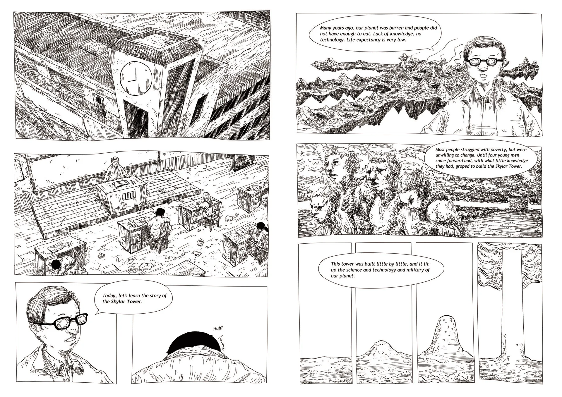 In order to better show the real problems deeply, and at the same time to take into account the entertainment of reading, the science fiction theme is used to describe. Using pure hand drawing and monochrome to create a science fiction graphic novel can also reflect a sense of contrast.