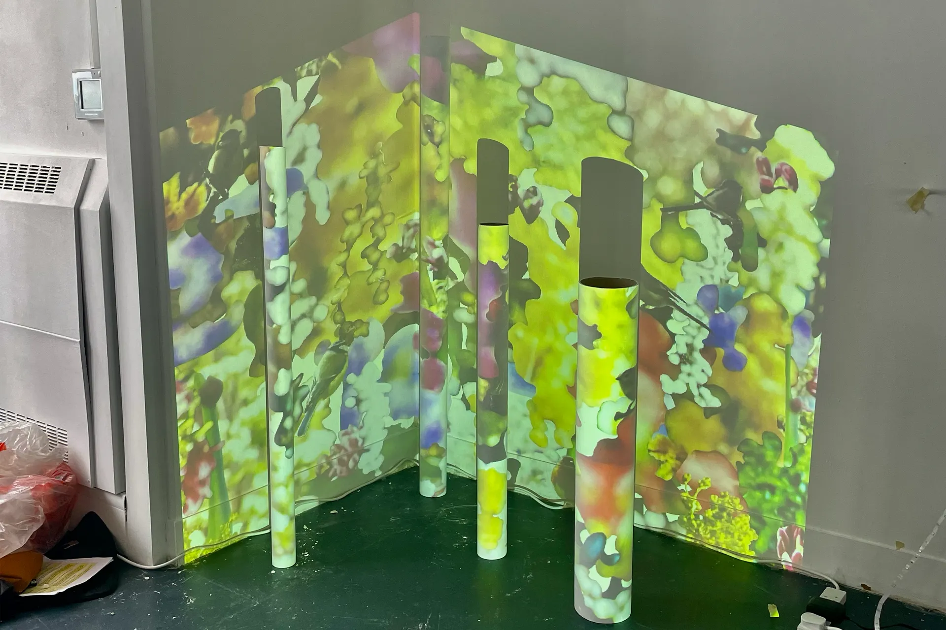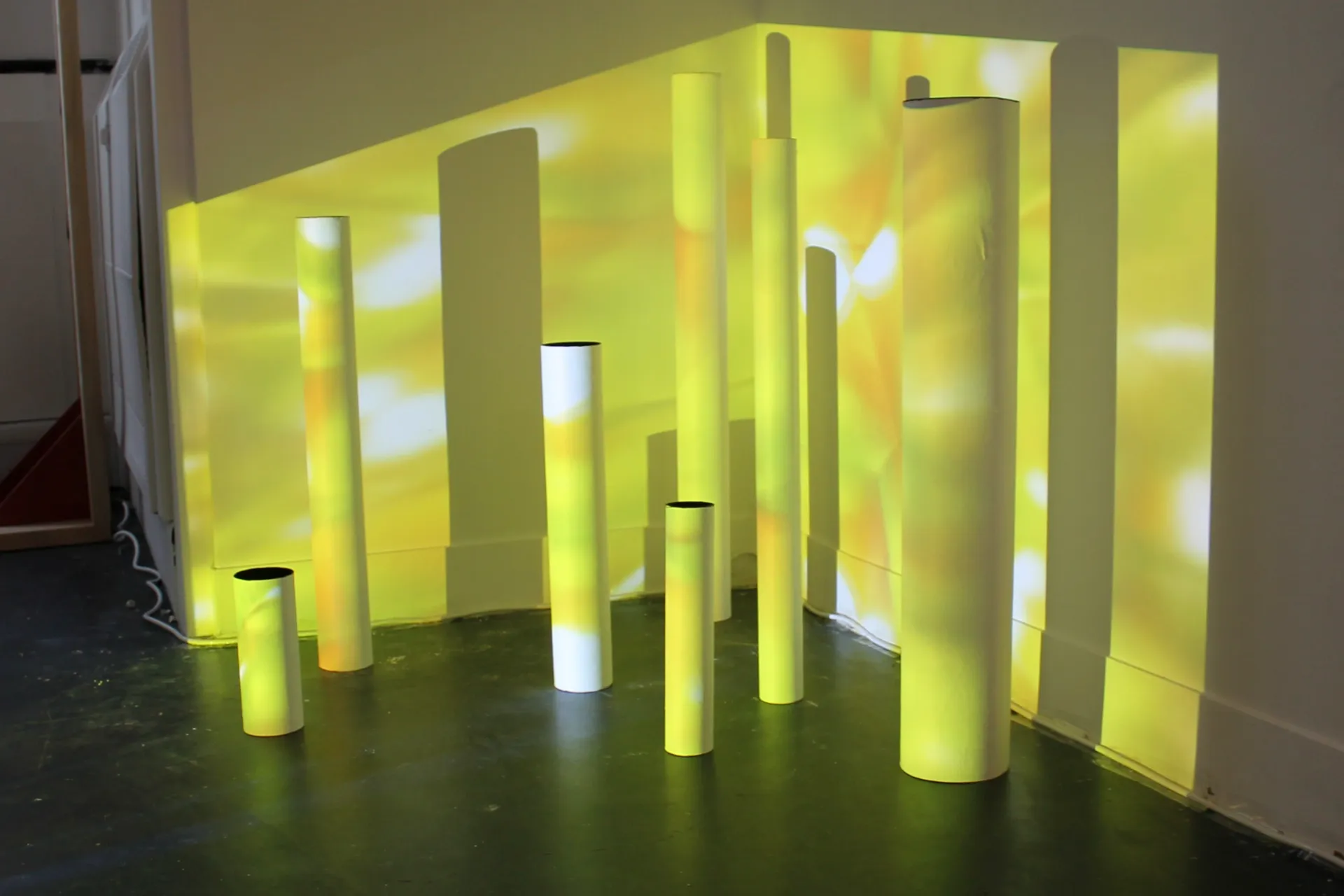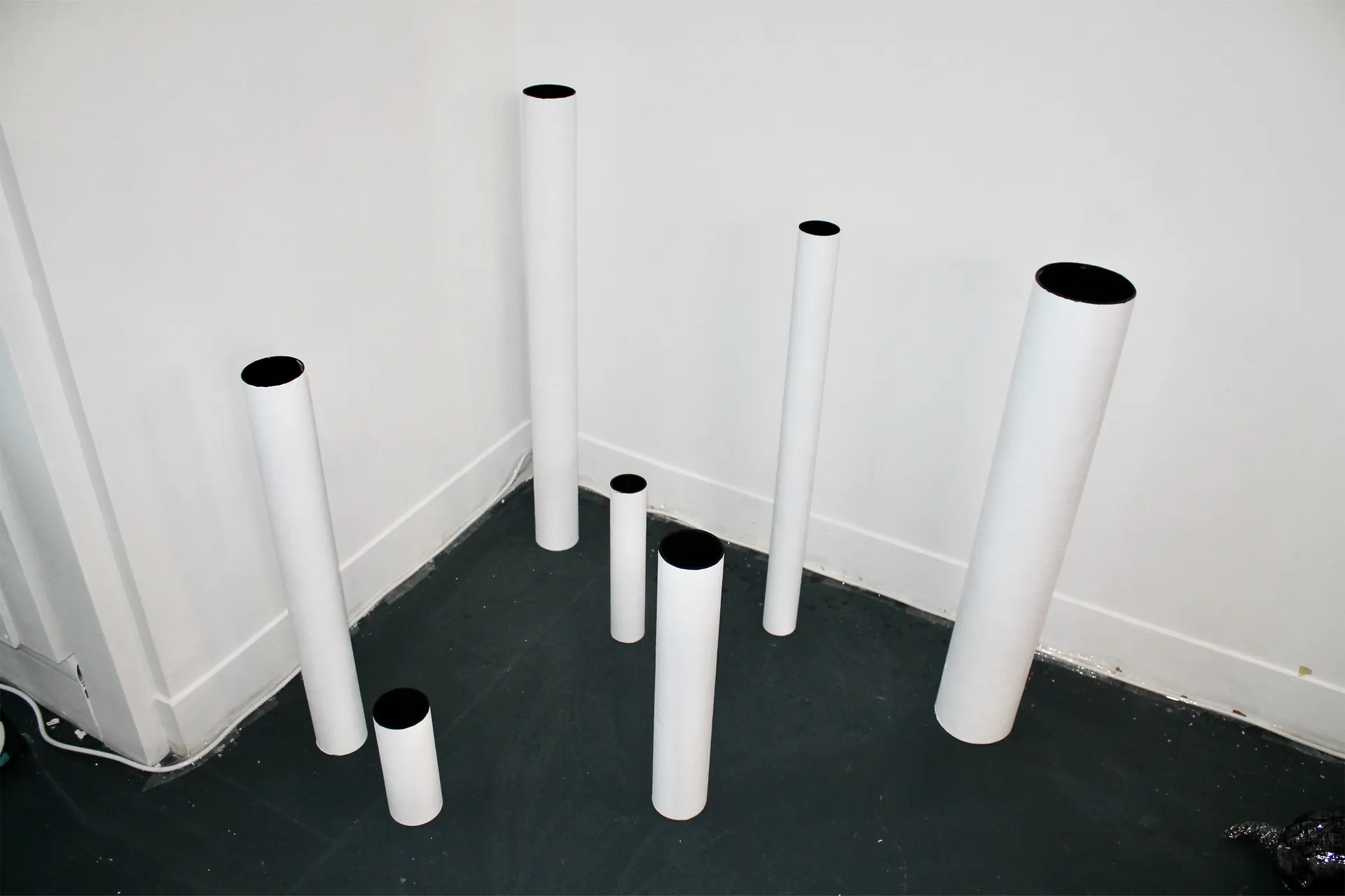 The white tubes were inspired by my research into the origins of life and the theory that oceanic hydrothermal vents are hotspots of diversity where life of earth originated. They are painted black on the inside as the darkness represents the vast amount that is unknown about the natural world, reminding the audience of the human ignorance into life’s intricate complexities. In this way I have brought together the origins of the world I observe around me in the physical installation, while reflecting onto it the wonder and amazement I experience with my own eyes at the world I can see in front of me. Us humans have incredible knowledge about the world around us, but there is much more to learn; we must stay humble and curious in order to have an ethical relationship with planet Earth.
