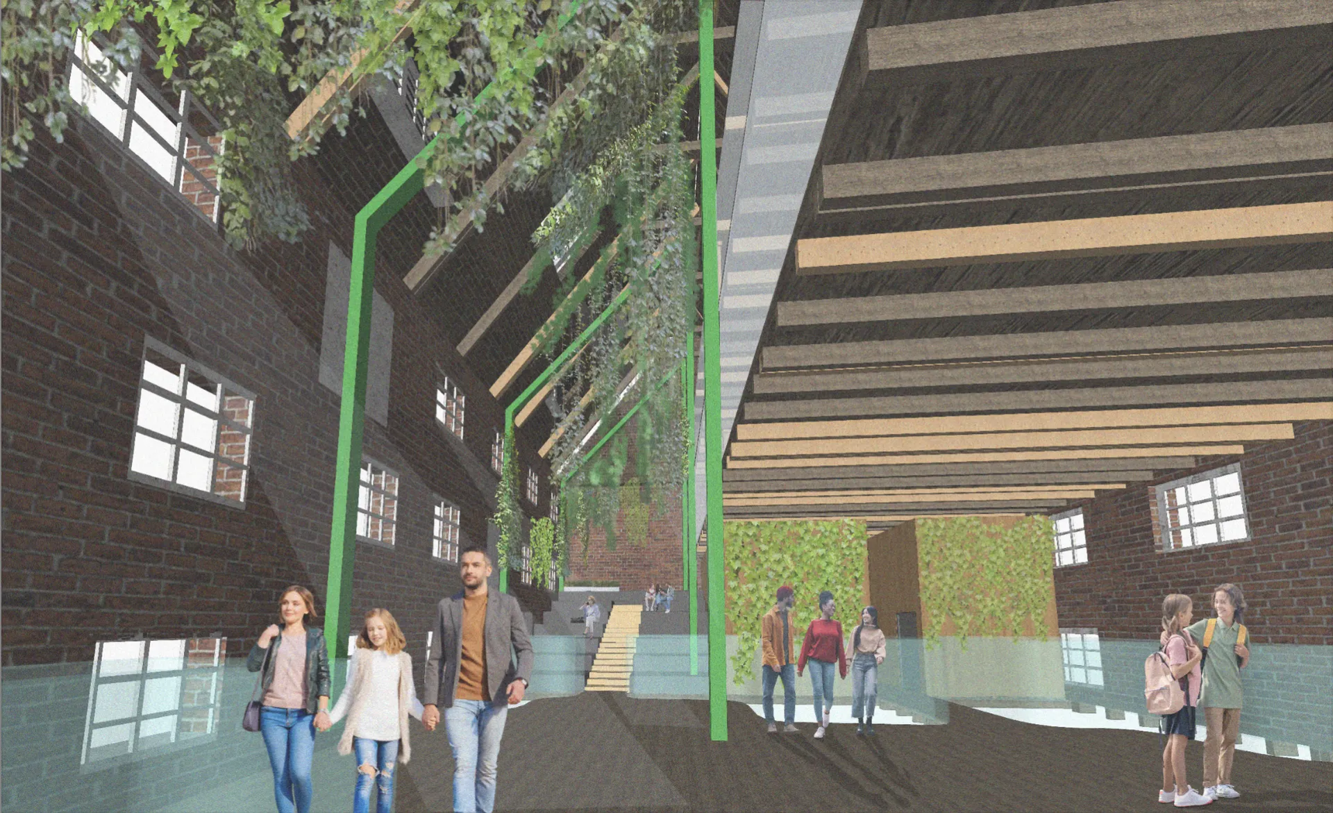 Welcome to project called “The Green Kitchen: A Sustainable Food Market and Cookery School Transforming Culinary Experience”, where an old mill is transformed into a modern, industrial, and sustainable food market and a vibrant cookery school. Our vision is to repurpose this historic building that will invite people in and foster a sense of community, celebrating diverse cultural backgrounds in one space that everyone loves the most- the food market!
